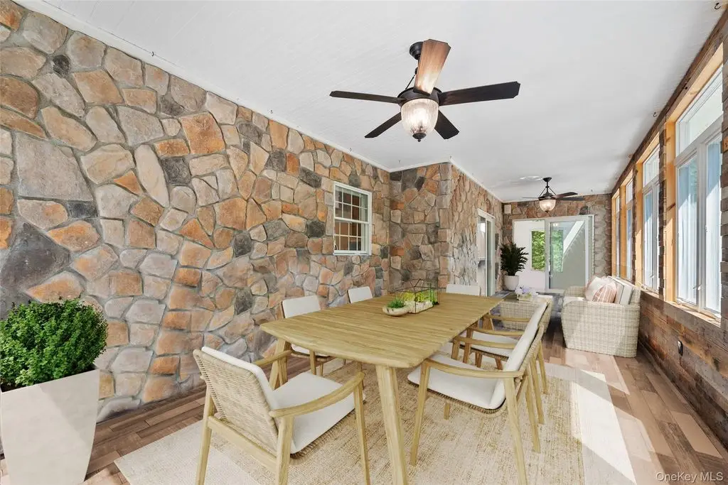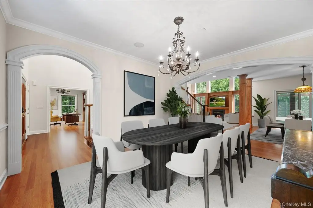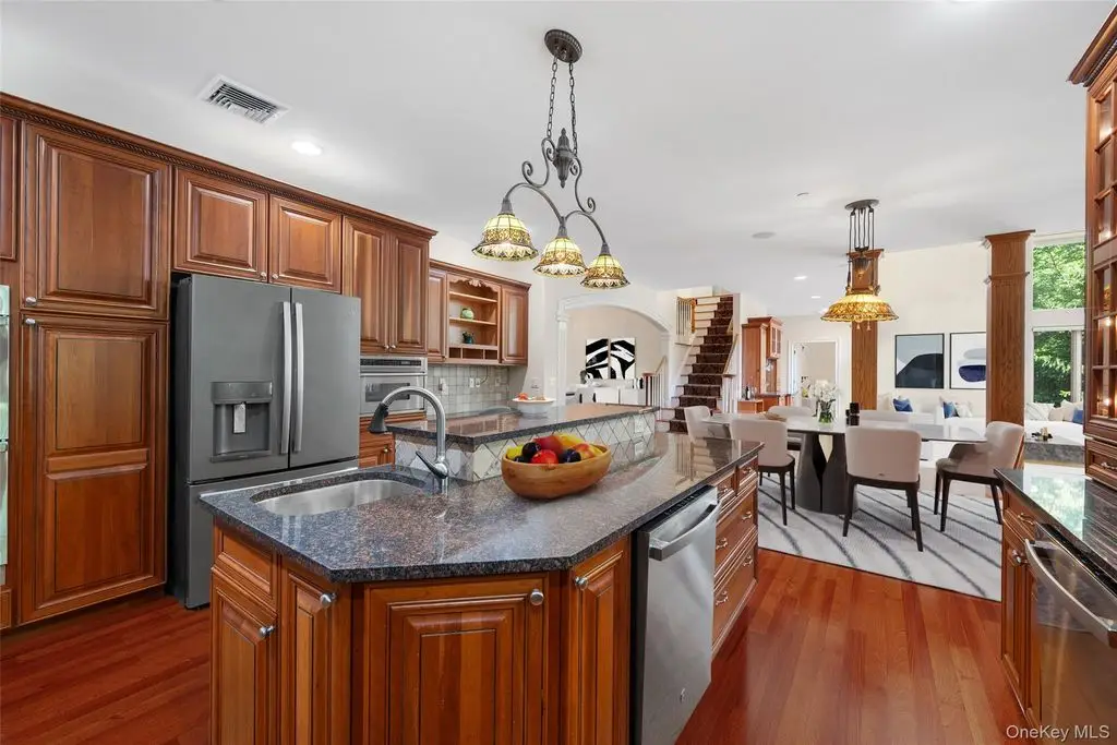 This Hudson Valley Haven is 60 minutes from NYC and less than 5 miles from the train station! You're going to love this home, the income it can produce with the two bedroom apartment and it's accessibility to Manhattan. Designed for extending living or additional income, this 5043 square foot multi-generational home offers a blend of privacy with the luxury of nearby commuter accessibility. The journey begins with the drive through a natural canopy of mature trees leading to the stunning private estate that includes a 2-bedroom apartment with a separate entrance and driveway. The circular driveway brings you to 5.8 acres of professionally landscaped beauty including a private pond. The main floor starts with inlaid hardwood floors leading to a formal dining room, a library, a first floor bedroom and first floor full bath and then into the great room with it's floor to ceiling windows designed to enjoy the beauty of the four seasons from the comfort of inside. The custom designed kitchen is the soul of the home with it's toffee glazed cabinets, granite counters, massive island, two dishwashers, two full size wall ovens, three sinks, a built in work space and a breakfast nook. Then onto the heart of the home... a stunning stone and tile sunroom overlooking the back yard and pond. Upstairs is host to three guest bedrooms (one works as a second office) a loft area, a laundry room, a full guest bathroom, a primary suite with an enormous walk in closet, additional closet space, a bonus room for a home gym and the primary bathroom with radiant heat. Next is the two bedroom, one bath accessory apartment with it's own entrance and parking area. Ideal for extended family or guests, this apartment has a living room with gas fireplace, a screened in porch, a dining area, kitchen with granite counters and it's own laundry, two ample sized bedrooms and a fully bath with a walk in shower. Additional finer points of this home include OWNED solar panels, whole house generator, heated three car garage, indoor fire suppression system, tremendous brick patio, central vacuum, brand new paved driveway, a pull down stair attic with floorboards, an unfinished basement for storage, 6 zone heat and three zone central air, surround sound, two built in safes and so much more. Did I mention that this home is located in the highly sought after Cornwall School District Do you have ties to West Point and host or entertain for games and events There's plenty of room for everyone!! Located just 5 minutes from Stewart International Airport and a short drive to 9W, I84, I87,West Point, and Stewart National Guard Base. Enjoy hiking, local farmer markets, ice cream stands, parks, near by shopping at Woodbury Common and five star river dining. Call today for a private tour.