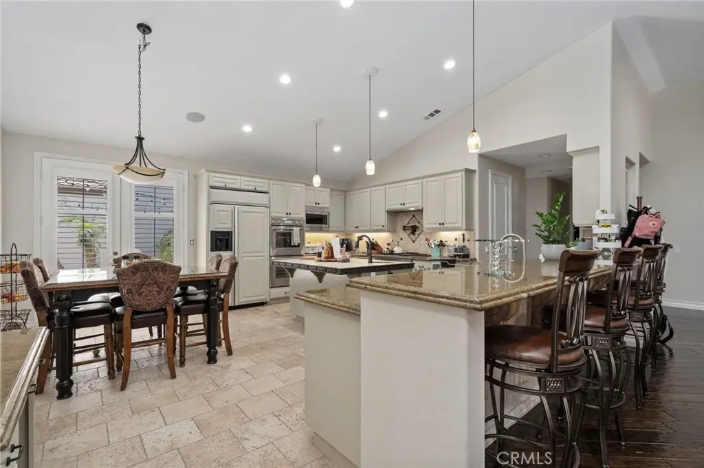 Welcome to The Orchards by Amberhill--a stunning single-story estate offering nearly 4,000 square feet of luxury living on almost half an acre. This five bedroom, four bath home features soaring ceilings, an open floor plan, and elegant finishes including crown molding, plantation shutters, custom woodwork, and travertine flooring. The chef's kitchen boasts a large island with farmhouse sink, granite counters, and a spacious breakfast nook that opens to the family room. The primary suite is a true retreat with vaulted ceilings, fireplace, spa-inspired bath, and custom cabinetry. Designed for entertaining, the backyard showcases a rock saltwater pool with waterfalls, a covered patio with fans and built-in stereo, gazebo, and shuffleboard court. Gated RV parking and a 3-car garage with epoxy floors complete this one-of-a-kind property. Located in highly desirable South Corona, this home offers access to award-winning schools including Santiago High and Orange Elementary. Enjoy nearby shopping, dining, Dos Lagos and The Crossings, golf courses, parks, and easy freeway access to the 15 and 91 -- perfect for commuters. This is luxury living at its finest in one of Corona's most sought-after neighborhoods.