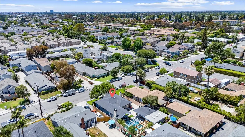 Experience the perfect blend of sophistication and casual luxury in this beautifully remodeled Costa Mesa home, ideally located just a short bike ride to the beach or to the scenic Back Bay. The primary property has 3-bedrooms and 2-bathrooms that welcome you with high-beam ceilings, engineered oak flooring, and elegant design touches throughout. The heart of the home is a gourmet kitchen with natural wood cabinetry, quartz countertops, and a 6-burner Wolf industrial oven—perfect for both casual meals and dinner parties. A stunning floor-to-ceiling, temperature controlled, glass-encased wine cabinet stores up to 124 bottles in style. Designed for the ultimate entertainer, this residence boasts zoned surround sound from the cozy front porch to the serene backyard fire pit. Step outside to discover a private oasis, featuring a covered patio with a fireplace, a built-in BBQ and kegerator, a big-screen TV for movie nights, and a luxurious pool with a built-in spa. The outdoor living area is completed with a remote-controlled sunshade for added privacy and comfort. The primary suite is a retreat of its own, with a spacious soaking tub, dual sinks, and a walk-in shower that doubles as a steam room. The smart home system and wood-burning fireplaces—both inside and out—enhance the warm, welcoming ambiance. For guests or extended stays, the separate studio guest house includes a full kitchen, bathroom, and private entry. The property offers ample parking with a long driveway leading to a detached 2-car garage. This residence blends craftsmanship with everyday comfort. The Charm of East Costa Mesa.