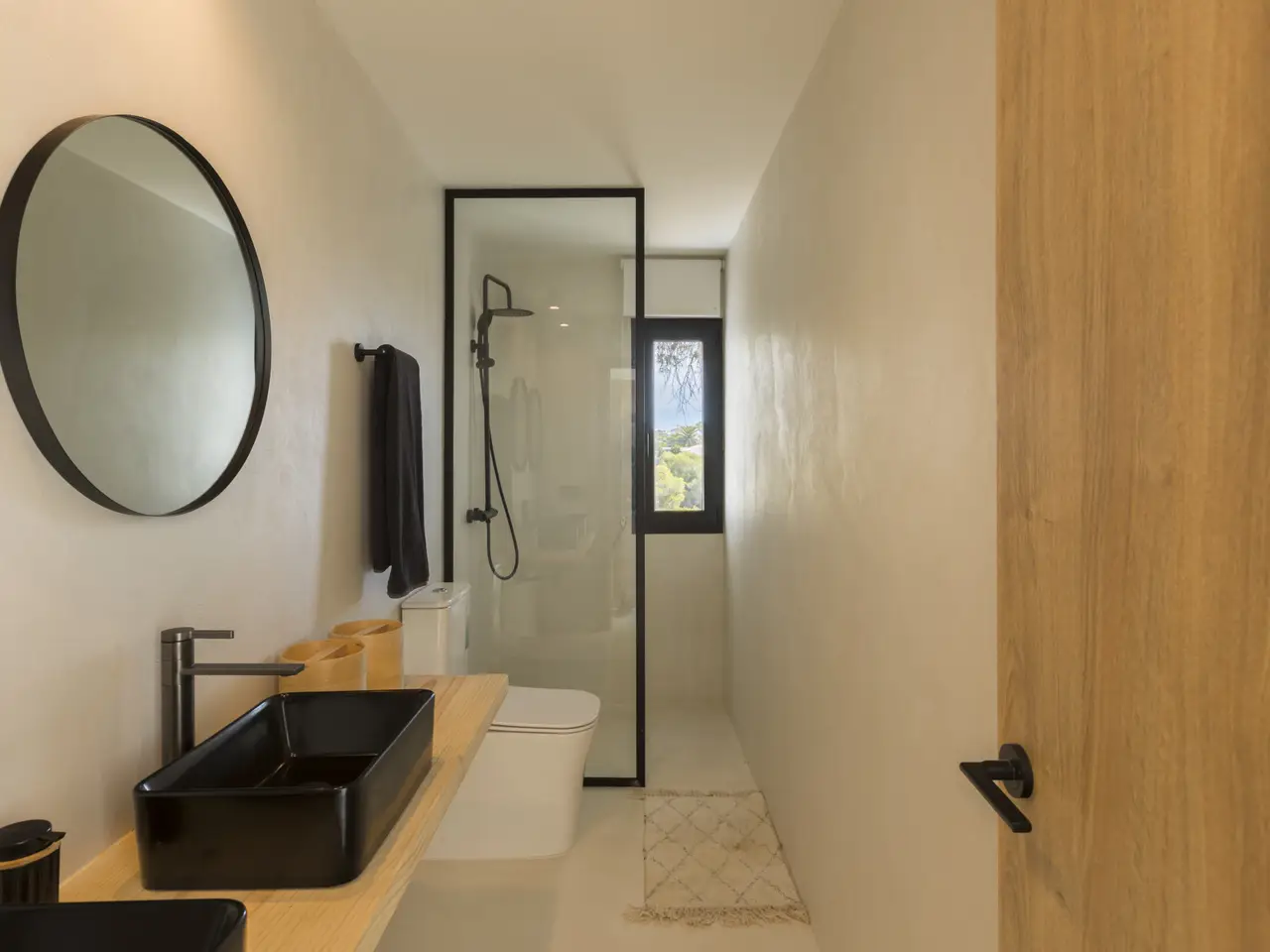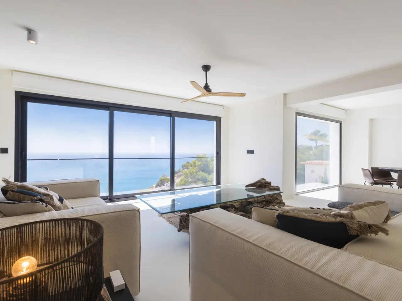 Spectacular villa with stunning sea views, located in the Costa Nova area in Javea, very close to La Granadella beach. It is distributed on 2 levels, communicated both indoor and outdoor, with access to the outdoor areas, terraces, swimming pool and garden. Through a majestic wooden door you access the main level, where you find spacious living room, dining room, courtesy toilet, fully equipped kitchenette and reading area with fireplace, all with huge windows with unbeatable sea views. On the ground floor is located a total of 4 double bedrooms, each with an en-suite bathroom, exits to the terraces and pool area, with its outdoor shower and barbecue area, all with sea views. From the main floor by a spiral staircase, we access the gravel solarium, enabled as a chill out, with space prepared for a barbecue, this area is prepared to enjoy the tranquility and enjoy the views. As extras the property is equipped the aerotermia system, underfloor heating throughout the house, air conditioning by ducts, parking area, the south orientation and it should be noted that it is sold completely furnished.
