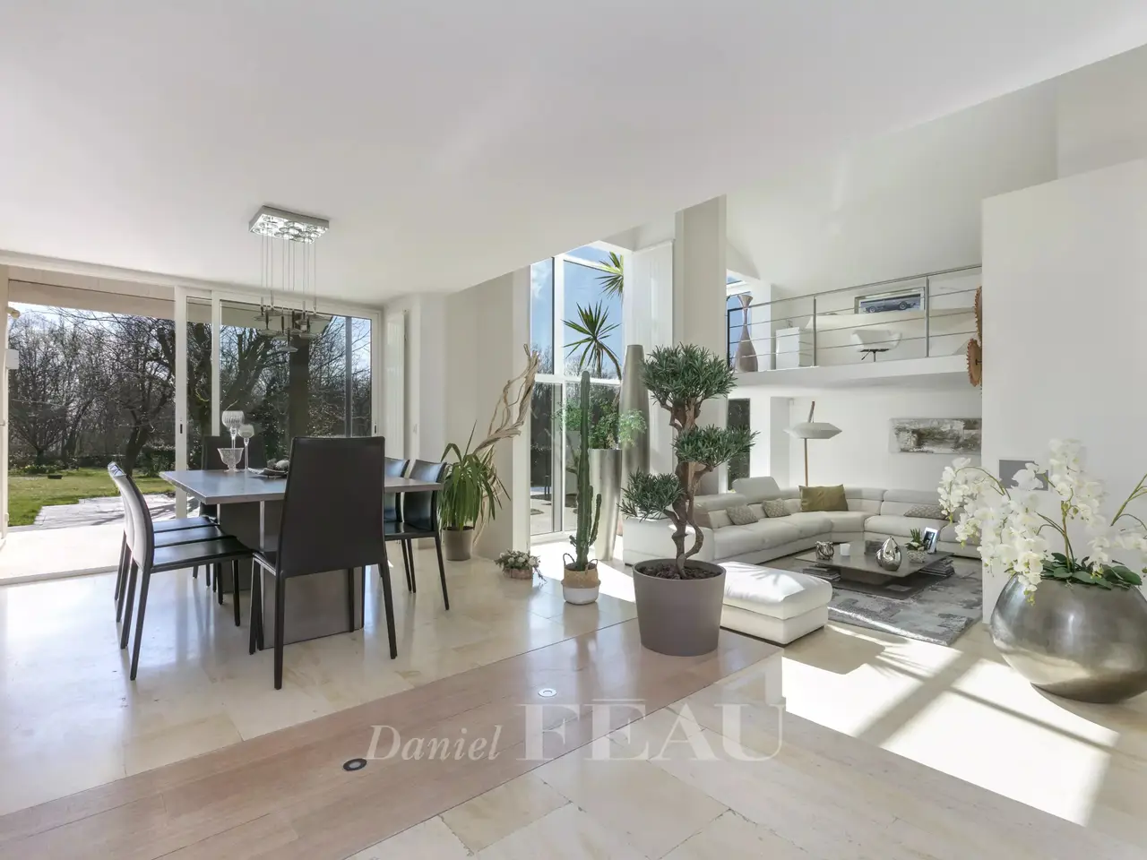 This property offering 411 sqm of floor space and about 260 sqm of living space in excellent condition is set in 6000 sqm of grounds in a peaceful leafy environment. Very bright and tastefully renovated throughout by the current owners, it includes a 75 sqm triple living/reception room featuring an 8-metre high cathedral ceiling and a wood burner, a dining room opening onto a terrace and the garden, a luxurious fitted and recently equipped kitchen with dining facilities, a utility room, and a near 46 sqm master suite with a fully west-facing bedroom featuring a fireplace, a bath/shower room/wc and a dressing room. A bright mezzanine study leads to two spacious bedrooms (one with a shower room), a smaller third bedroom or possible dressing room, and a shower room. On a basement comprising a 100 sqm 4-car garage, a boiler room and two large storage rooms. The floodlit leafy grounds are potentially partially constructible, and feature a swimming pool , a vegetable garden and two outdoor parking spaces. In a convenient location near the shops, the schools and the transport networks (Paris 25 min via the A14, and 25 min by train). Bus lanes access excellent schools including Blanche de Castille, Saint-Jean-Hulst and Saint-Germain-en-Laye International School.