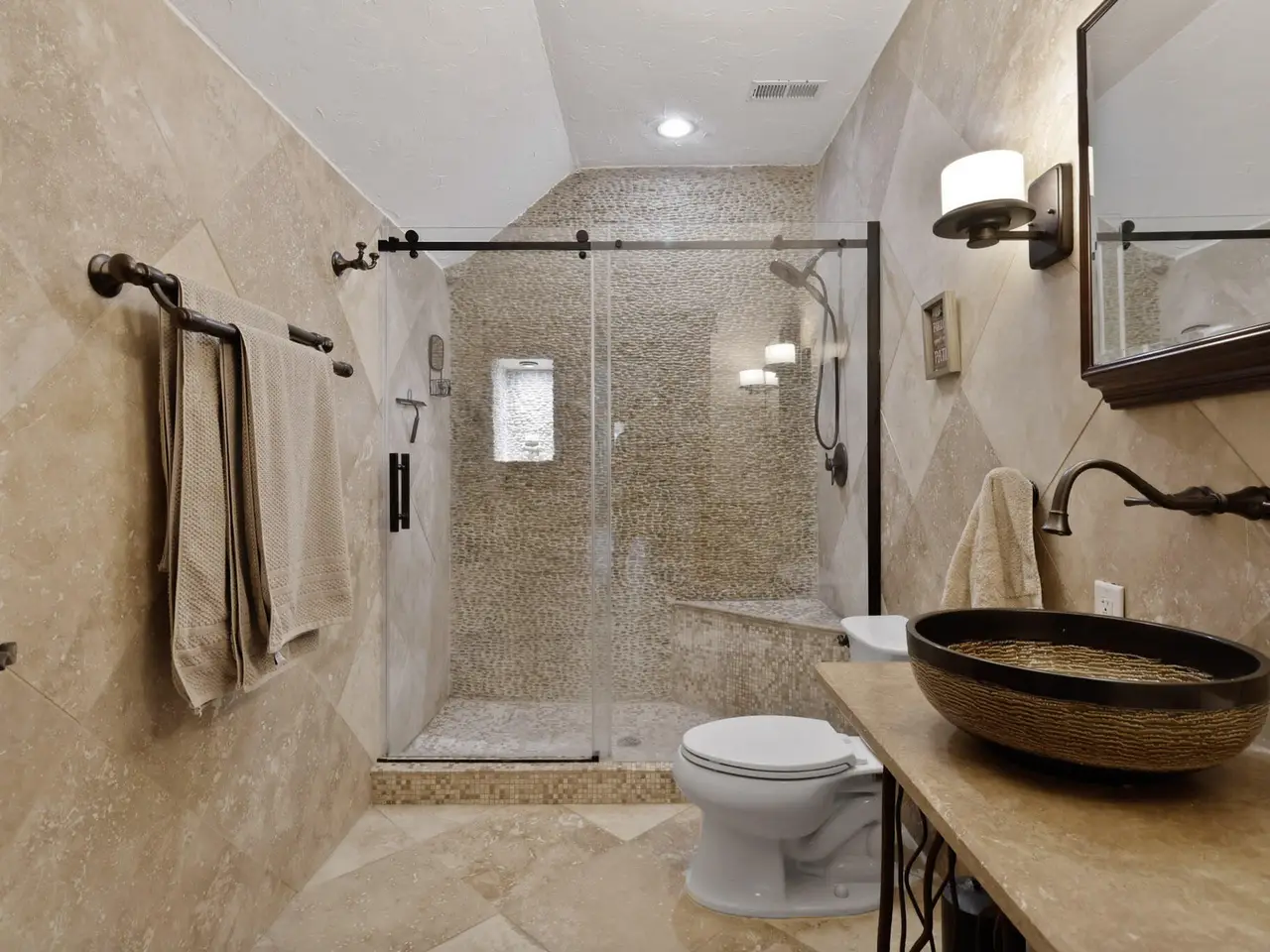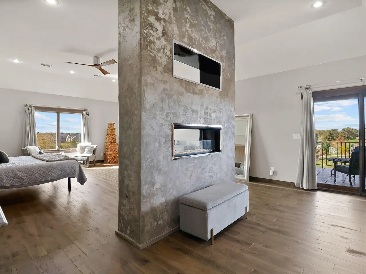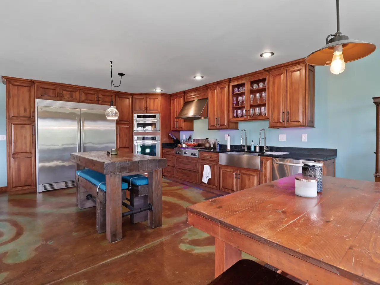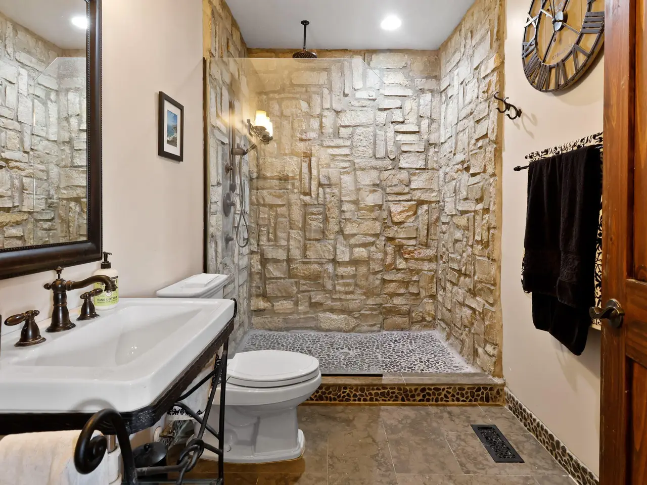Gorgeous brick and stone home with a finished walkout is nestled into a hill with water views from every window. A seamless blend of old world charm and modern appointments create a warm and inviting retreat. 5 custom baths, 4 beds, 4 fireplaces including the masonry outdoor fireplace, 3 outdoor spaces with 2 tiled, covered balconies & a large paver patio, kitchens located on the main and walkout level perfect for entertaining or related living plus a dock with premium MoistureShield Decking for taking advantage of swimming, boating & fishing on Doubletree Lake. Handscraped oak hardwood flows throughout the main level including the entry, dining with coffered ceilings, kitchen with character maple cabinetry & Delicatus granite counters, breakfast room & living rooms featuring an indoor/outdoor fireplace open to the 22' x 10' balcony. The upper level owner's suite is a true escape with a double sided FP, balcony, two 20'x 6' WICs & a spectacular bath lined in antiqued marble with 2 floating vanities, 2 person tub, walk-in shower & linen closet. Main level primary with ensuite hosting a whirlpool tub & tile shower, large WIC & balcony access. Main floor 2nd bed & upper level 4th bed/bonus room are both adjacent to their own stunning baths. The walkout is perfect for entertaining with acid stained concrete floors & a kitchen featuring built-in full size fridge & freezer units, convection microwave, oven & warming drawer, gas cooktop plus a freestanding island with integrated bench seating. A convenient basement bath features a beautiful shower with high definition granite look walls perfect for a rinse after a day on the lake. The family room with gas FP & coffered ceilings, gym and storage area complete the basement. Back & side sliders access the expansive patio. Whether you'll be enjoying the gorgeous water views year round or using this for your lakefront getaway, the quality craftsmanship and premium finishes make you feel like you're living on holiday every day.