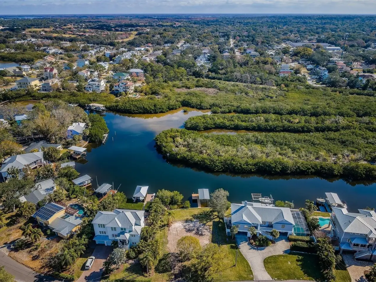 Crystal Beach! Marvelous waterfront vacant lot for sale with dock & davits! Ready for you to build your custom home with your choice of builder! WINDSTAR HOMES has graciously designed & priced out a beautiful custom home to fit comfortably on this lot! You will see the drawings in the photos. Call for details.This lot is nestled along the scenic Intercoastal Waterway in the wonderful community of Crystal Beach. With an impressive 94 ft. of seawall hugging the property and a spacious canal offering breathtaking views of a sprawling 15 plus Acre Preserve, this vacant land seamlessly blends the luxury location on N. Mayo Street with nature's tranquility. Step onto the large covered composite dock, complete with an 8000 lb. lift, and immerse yourself in the serenity of your private waterfront sanctuary. Witness the wonders of nature unfolding in your backyard, creating an unparalleled sense of peace and quiet. With seamless boat access to the Intercoastal Waterway, Gulf of Mexico, Caladesi Island, Honeymoon Island, Three Rooker Bar, and Anclote Island, embark on endless aquatic adventures from the comfort of your new home. Crystal Beach, situated in unincorporated Pinellas County, offers a rare lifestyle without HOA's or Deed Restrictions. Revel in the community's amenities, including a Community and Youth Center, Township Post Office, and Live Oak Park featuring a charming pier – all easily accessible in this golf cart-friendly neighborhood. Benefit from proximity to top-rated schools such as Ozona Elementary School, Palm Harbor Middle School, and Palm Harbor University. Indulge your outdoor pursuits with the Pinellas Bike Trail right at your doorstep, offering over 40 miles of scenic trails. This prime location ensures convenience, with shopping centers, restaurants, and hospitals just a stone's throw away. Plus, enjoy seamless travel with Tampa International Airport a mere 30-minute drive from your waterfront haven. Embrace the epitome of coastal living – where luxury, natural beauty, and accessibility converge.