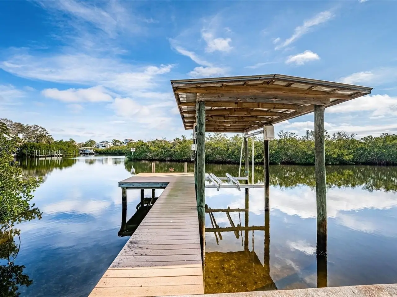 • Large covered composite dock with 8000 lb. lift