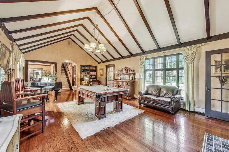 MOTIVATED SELLERS! Prepare to embrace the pinnacle of estate living at Stonegate Manor, a historic and magnificent Georgian country estate situated on 5.5 lush acres in the heart of Crystal Lake. Built circa 1935, this property offers a blend of timeless appeal, architectural beauty, and breathtaking views. As you approach via the classic gated entrance, a private driveway lined with age-old oaks leads to this secluded sanctuary. The elegant flagstone turnabout welcomes guests, leading to two paved entrance paths that direct them to the arched main doorway. Two front parking spaces sit adjacent to the entry. A second turnabout provides access to the pole barn, offering space for oversized vehicles such as motorhomes and trailers. This grand estate is an architectural treasure, rich in history and stunningly preserved. The 4-bedroom, 4-bathroom home spans 4,500 square feet of living space, with three wood-burning fireplaces adding warmth and character. The home retains original 1930s features, including hardwood floors, stair railings, and light fixtures, maintaining its historic charm. The master suite is a private retreat, complete with a fireplace, balcony, and a custom ceiling that creates an inviting space for relaxation. At the heart of the home is the massive gourmet kitchen, featuring a granite-topped island, commercial cooking equipment, vaulted ceilings with open barn wood beam gables, a wet bar, and ample space for entertaining. Modern updates, including new air conditioning and heating systems, dual water heaters, a septic system, radon mitigation, and advanced water purification, ensure comfort while seamlessly integrating with the home's vintage character. The estate offers both forced air and baseboard heating for year-round comfort. The finished portion of the basement includes a 24 x 24 den and a gym, offering additional space for wellness and leisure. The unfinished portion includes a mudroom, a tack room, and updated mechanicals next to the original coal chute. The attached two-car garage, once the carriage house, provides indoor parking, with the antique fire door offering a link to the estate's heritage. Outdoor living is equally impressive. Stonegate Manor features gardens, original 1930s stone walls, a poolside entertainment courtyard, flowing patios, and multi-level decks. The 18 x 36 in-ground pool is perfect for warm summer days, while the koi pond adds tranquility. The three-car detached garage/pole barn provides space for over six vehicles, ideal for car enthusiasts or hobbyists. For equestrian enthusiasts, the property is zoned for horses and features ample grounds for horseback riding or additional facilities. Remnants of the original pastures remain, and the pole barn could easily accommodate horse stalls. Nearby hiking trails add to the recreational opportunities, making this estate not just a home but a retreat. Stonegate Manor is ideally located minutes from downtown Crystal Lake, offering both seclusion and convenience. The property is a short drive to Metra stations for easy access to Chicago, as well as close to shopping, dining, and award-winning schools. The nearby Three Oaks Recreation Area provides outdoor activities, including kayaking and hiking. This estate, with its history, stunning features, and proximity to amenities, presents an extraordinary opportunity for a discerning buyer. Whether you're looking to raise a family, entertain, or embrace a peaceful lifestyle, Stonegate Manor is the perfect place to put down roots and create lasting memories. Don't miss this rare chance to own one of Crystal Lake's most iconic homes. **This home has been featured as a Dream Home with the Chicago Tribune and aired on nationally televised show: The American Dream in 2025! **
