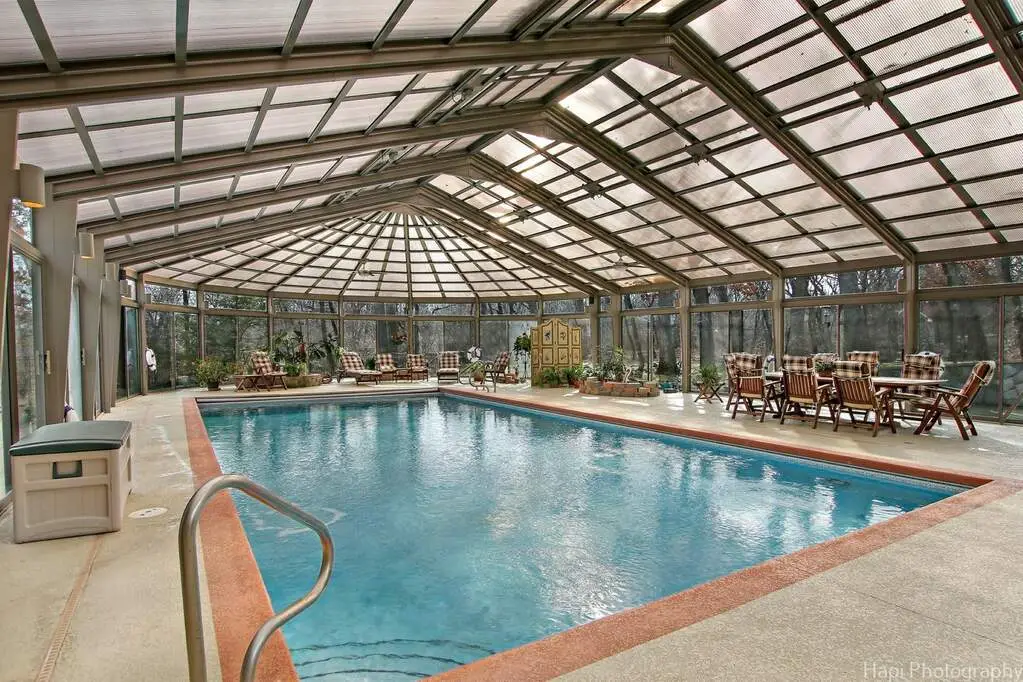 Esta finca para entusiastas de los autos está meticulosamente diseñada para satisfacer todas las pasiones automovilísticas. Ubicada en una propiedad arbolada de 3.3 hectáreas y completamente cercada, la casa de 725 m² ofrece increíbles vistas desde todas las ventanas, relucientes pisos de madera noble, pintura fresca y alfombras nuevas, chimenea de piedra de dos pisos, una cocina blanca y luminosa con electrodomésticos de alta gama, baños completamente remodelados y actualizados, un porche para tres estaciones y un dormitorio principal en la primera planta, que incluye una oficina privada (que puede usarse como dormitorio). Accesible a través de un pasillo cerrado y climatizado, con ventanas, se encuentra la casa de la piscina anexa de 280 m², que cuenta con piscina de agua salada, jacuzzi, cocineta/bar y baño completo/vestuario, todo ello protegido por un techo retráctil para el verano y un sistema de deshumidificación para el invierno. Desde el momento en que cruza la puerta principal, le reciben árboles maduros, iluminación exterior personalizada y un arroyo recirculante. Entradas esculpidas conectan a la perfección la casa, dos dependencias con un diseño automotriz excepcional y el estanque, aireado y con abundante lubina y pez luna. El Edificio Uno, construido en el año 2000, abarca 650 m² y combina un taller, una oficina que puede usarse como dormitorio y una sala de exposición. Está equipado con claraboyas para obtener luz natural, almacenamiento exterior cubierto y cuenta con calefacción, aire acondicionado y control de humedad. El taller adjunto de 180 m² cuenta con suelo radiante y una amplia exposición al sur. El espacio de oficinas cuenta con un techo de dos pisos, baño completo y cocina americana. El Edificio Dos, añadido en 2005, abarca 1400 m² integrados en la ladera con dos niveles de salas de exposición. Ambos niveles cuentan con calefacción, aire acondicionado y control de humedad. El primer nivel cuenta con un aseo, almacenamiento y un garaje para autocaravanas con una magnífica puerta de garaje personalizada de 5,5 x 5,5 metros. El segundo nivel alberga más espacio de exhibición, oficinas, una sala de juntas (que puede usarse como dormitorio), un baño completo, cocina y lavandería. Los pisos de epoxi y la iluminación de la sala de exhibición adornan ambos niveles. Generadores de emergencia para la casa y las dependencias garantizan un suministro eléctrico ininterrumpido. Toda la propiedad presume de una meticulosa atención al detalle. Esta finca para entusiastas de los autos es un sueño hecho realidad para quienes buscan un espacio perfecto para guardar, restaurar y disfrutar de sus colecciones. Nueve dormitorios (siete en la casa, uno en cada dependencia). Baños (4,1 en la casa, 2,1 en las dependencias). Tres cocinas (una en la casa, una en cada dependencia).