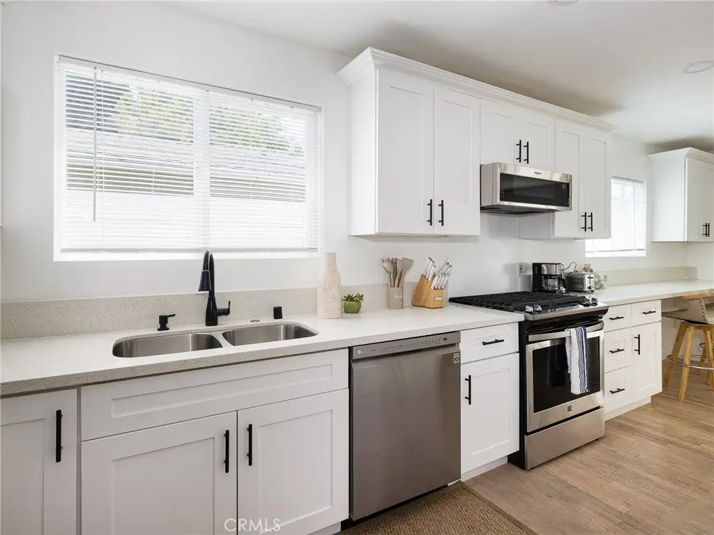 Welcome to 11333 Braddock Dr, a beautifully updated 6-bedroom, 3-bathroom mid-century home in the highly sought-after Blair Hills neighborhood of Culver City. This 2,390 sq. ft. gem, built in 1951, seamlessly blends classic charm with modern upgrades throughout. The open-concept living area is bathed in natural light, featuring gleaming hardwood floors and large windows that capture the surrounding greenery. The updated kitchen is a chef’s dream, with stainless steel appliances, quartz countertops, and ample cabinetry for storage. The spacious primary suite provides a peaceful retreat, while three additional bedrooms offer versatile space for a home office or guest rooms. Recent updates include a new roof, new high-efficiency furnace and AC, tankless water heaters, and energy-efficient windows. The exterior has been thoughtfully upgraded with a new driveway, walkway, and fully irrigated front and back yards—ideal for pets and relaxation. Enjoy the private backyard oasis with a manicured lawn, patio area for al fresco dining, and a hot tub for unwinding. The home also includes a charming unpermitted MILS (mother-in-law suite), with 2 bedrooms and 1 bathroom, that has been brought up to code. Located close to the 405 yet surprisingly quiet, this home offers the perfect blend of comfort, style, and convenience.