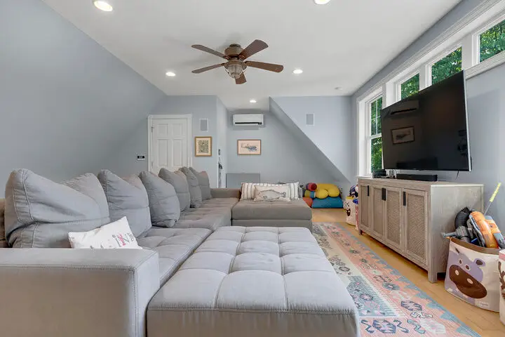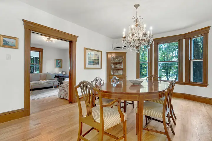 Set on nearly two acres along scenic Foreside Road, this timeless New Englander offers a combination of historic charm, modern updates, and an ideal location directly across from Broad Cove Reserve—a 23-acre public treasure with a sandy beach, pier, and walking trails. Inside, a gracious foyer with a stunning staircase and original moldings sets the tone, while formal and informal living spaces invite gathering. The formal living room features a gas fireplace while the family room offers a cozy heat stove. The versatile bonus room with attached half bath offers flexibility for work, play or easy conversion to a primary ensuite. The updated kitchen includes a walk-in pantry and opens to a tiered deck with hot tub, leading to the private backyard and pool area. The home's layout provides bedrooms and a full bath on each of its three levels, creating options for guests, home offices, or multi-generational living. The pool house, a legal 864 sf one-bedroom, one- and a half-bath accessory dwelling unit, can serve as guest accommodations, an entertaining space, or an income-producing rental. Significant updates include a whole-house automatic generator, heat pumps, solar array, irrigation system, and more. Living in Cumberland means enjoying one of Maine's most desirable communities, where top-ranked schools, scenic coastline, and a strong sense of community come together. From Broad Cove Reserve just across the street to nearby golf, marinas, and trails, outdoor recreation is always within reach—while Portland's vibrant dining, arts, and cultural scene is just minutes away.