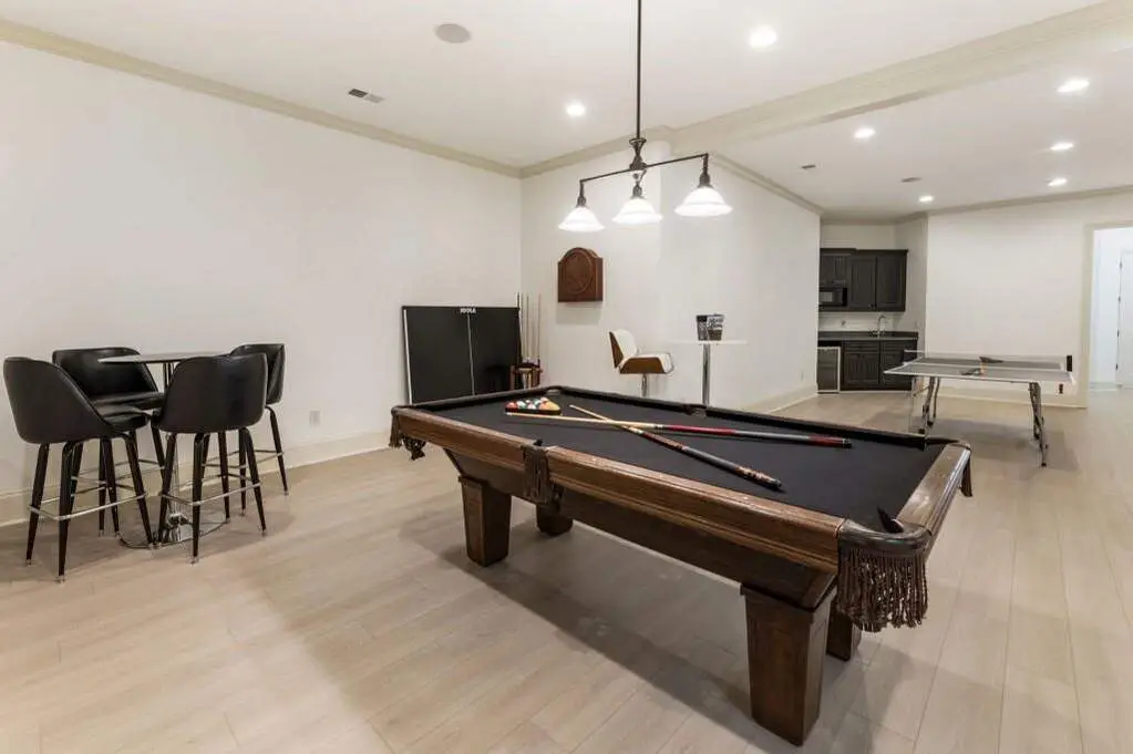 Welcome to this beautifully updated one level ranch style home that offers walk-out on the main level to your outdoor oasis featuring a gunite sparkling pool, a screened porch, and lots of outdoor entertaining space. This gorgeous home is located in Forsyth county and situated at the end of a quiet cul-de-sac in gated enclave of luxury homes. The charming front porch offers a warm welcome and sets the tone for the comfort and quality found throughout the property. Upon entering through the front door, you are greeted by a formal dining room on your right and a private study on your left, complete with built-in bookcases. This thoughtful layout creates a balanced and inviting entry that leads effortlessly into the main living space. The heart of the home features an open-concept kitchen design with this oversized island that offers seating and open concept. The completely modernized kitchen with all new appliances opens to the living room and screened porch. A centrally located fireplace serves as a warm and welcoming focal point, perfect for both everyday living and entertaining. Just off the kitchen, a screened-in back porch with its own fireplace offers a comfortable outdoor living space that can be enjoyed year-round. The primary suite is a peaceful and well-appointed space. The ensuite bathroom features separate dual vanities, two walk-in closets, and a large walk-in shower. A private bonus room, currently used as a home gym, adds function and flexibility. A second bedroom with ensuite is also located on the main floor. The fully finished basement includes two additional bedrooms, two full bathrooms, one half bathroom, a generous media room, and a wet bar. The lower level offers multiple flexible living spaces ideal for craft room, media space, movie room, ping pong or pool table room perfect for entertaining & hosting guests. Every major system has been thoughtfully updated including pool heater, HVAC, water heaters, roof replaced and freshly painted interior