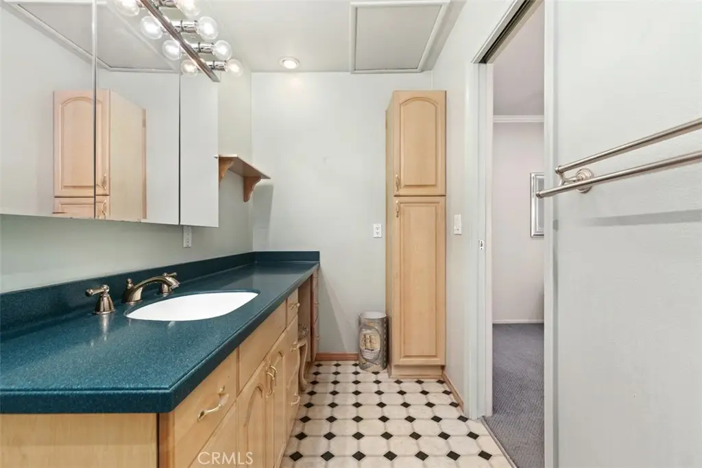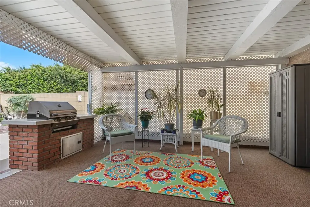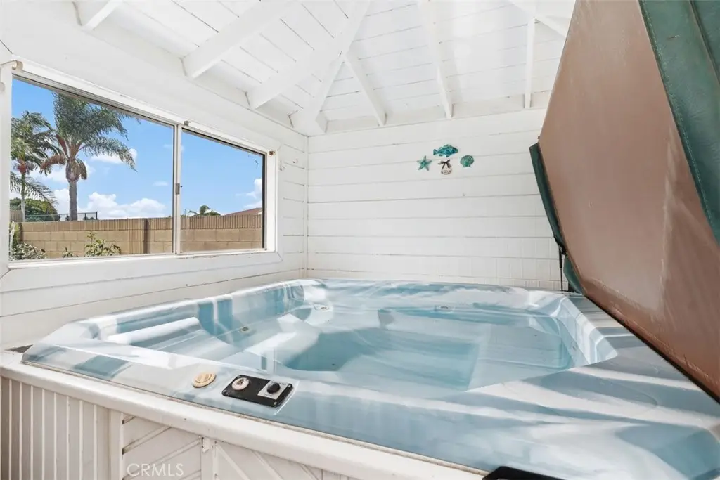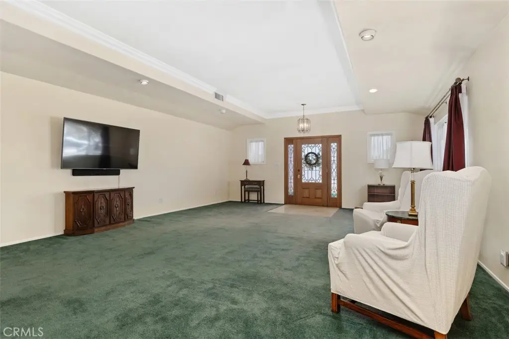 Beautifully maintained home with approx. 1,765 sq. ft. living space, backing to the Navy Golf Course. Step inside to a spacious living room with can lighting, coffered ceiling, fireplace, custom cabinetry, and a built-in bar. The remodeled kitchen features stone countertops, a custom island, and large windows overlooking the yard, flowing into the family area for easy entertaining. The expanded master suite includes a large walk-in closet, updated bathroom, and patio door to the private yard. Additional highlights include dual-pane windows, copper repipe, forced air heating, central air conditioning, ceiling fans, and soft water system. The finished two-car garage includes custom cabinetry, attic storage, and a laundry area with sink. Outdoor living features a covered patio, artificial turf, low-maintenance landscaping, and spa with custom gazebo. Conveniently located near the 405, 605, and 22 freeways, with nearby shopping (including Costco, Trader Joe's), parks, and award-winning schools: Patton Elementary, Bell Intermediate, and Pacifica High School.