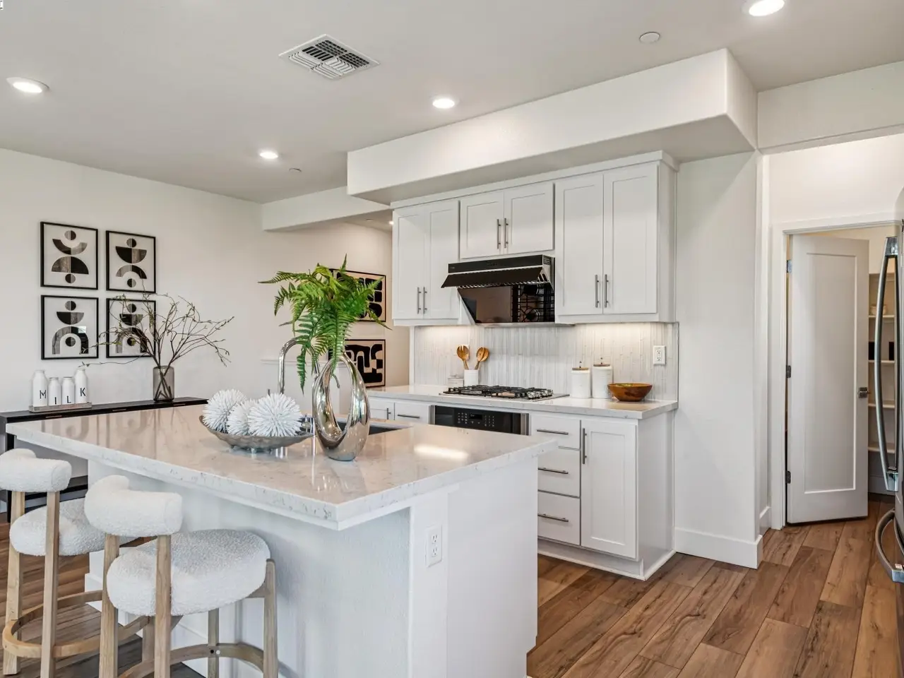 Welcome to this exceptional multi-story corner condo NORTH EAST Facing Front Door. The main level presents an inviting open living concept, flooded w/natural light from an abundance of windows that also offer stunning views. Enjoy peace & quiet thanks to the triple-paned windows designed for superior sound reduction. Contemporary kitchen, a chef's delight featuring sleek quartz countertops, elegant white shaker cabinets, a gas range, stainless steel appliances & a walk-in pantry. Spacious primary suite w/a walk-in closet, a double vanity & a large walk-in shower. 2bed/1ba on the same floor with washer/dryer in closet. Attached two-car garage w/driveway parking ensures easy access. Step out onto your private balcony to enjoy the views. Boulevard Rec Center, featuring a heated pool, meeting rooms, workout areas, a game room & outdoor lounges. Commuting is a breeze with easy access to major highways & just a 5-minute walk to BART. This prime location places you minutes from everyday essentials: groceries, banks, farmer's markets, diverse shopping options, charming cafes, exquisite dining, and entertainment at the local theater. Top-rated schools, beautiful parks, and a variety of recreational facilities are also within easy reach.
