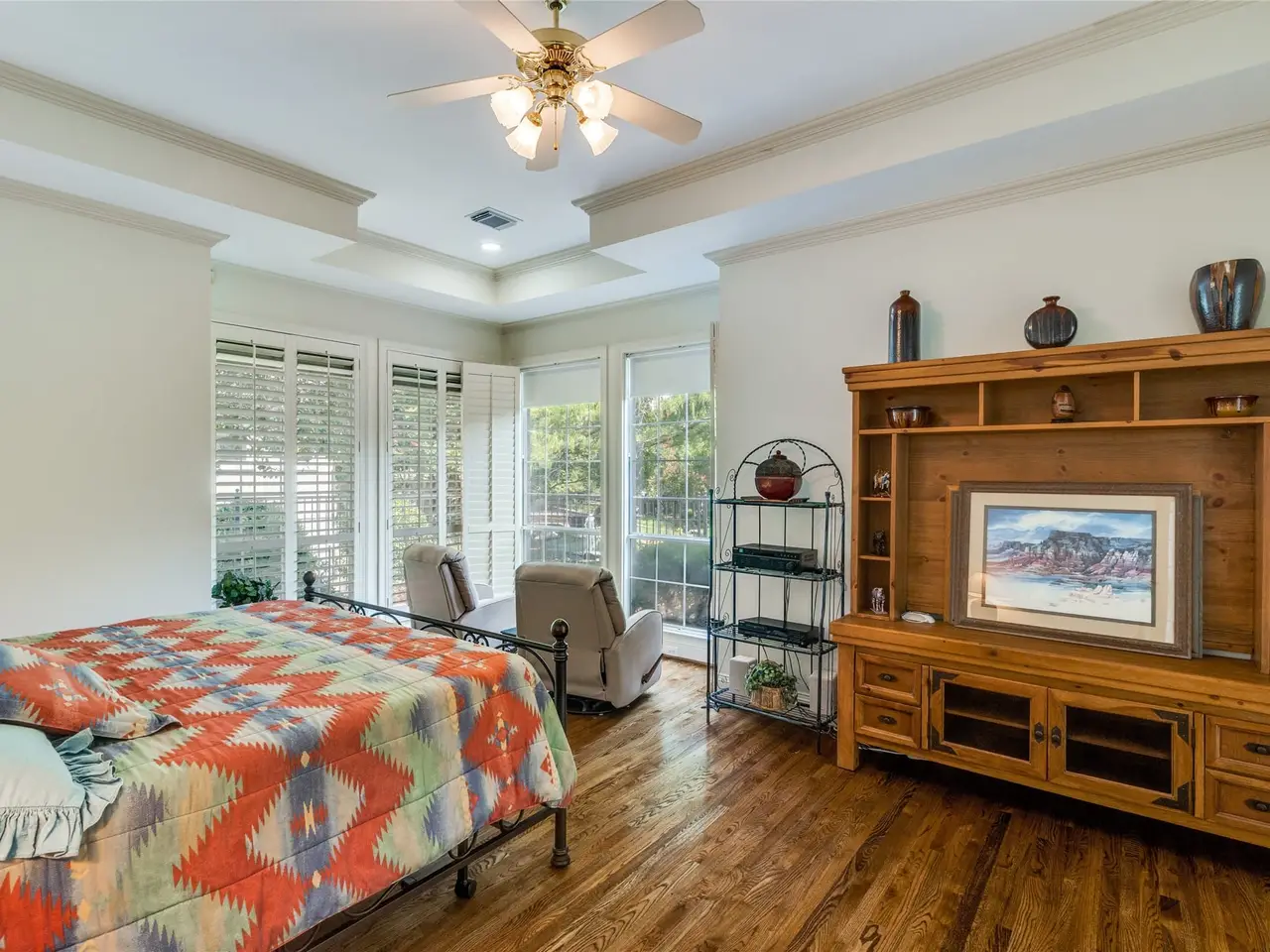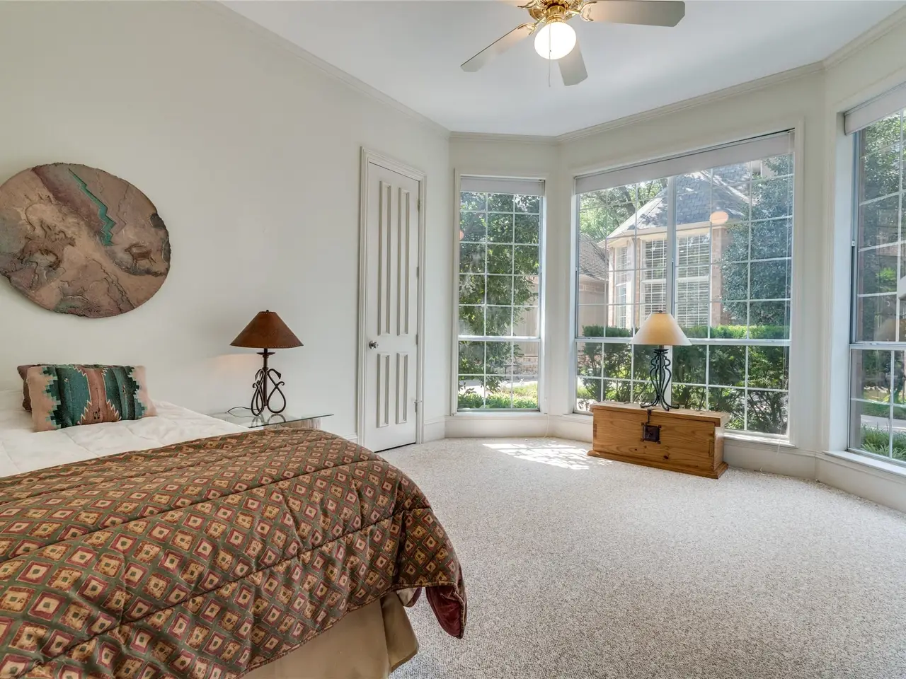 Located in the guard-gated community of The Downs of Hillcrest, this beautifully maintained residence offers the perfect blend of comfort, functionality, and serene living. This home welcomes you with a charming private outdoor space, ideal for year-round enjoyment and notably pool-free for easy maintenance. A spacious three-car garage provides ample room for vehicles and storage. The main level features a luxurious primary suite, a private guest bedroom, and a flexible living space currently used as a home office, perfect for remote work or quiet retreat. Upstairs, you’ll find three generously sized bedroom suites along with an additional living area, offering plenty of room for family or guests. Step out to the back patio and enjoy a peaceful sliver of water view, overlooking one of the community’s tranquil ponds. Additional highlights include an oversized utility room, one of the largest on the market, and a spacious walk-in attic upstairs for even more storage. Items that convey include fountain on patio, washer, dryer, laundry room fridge, upstairs microwave and mini fridge.
