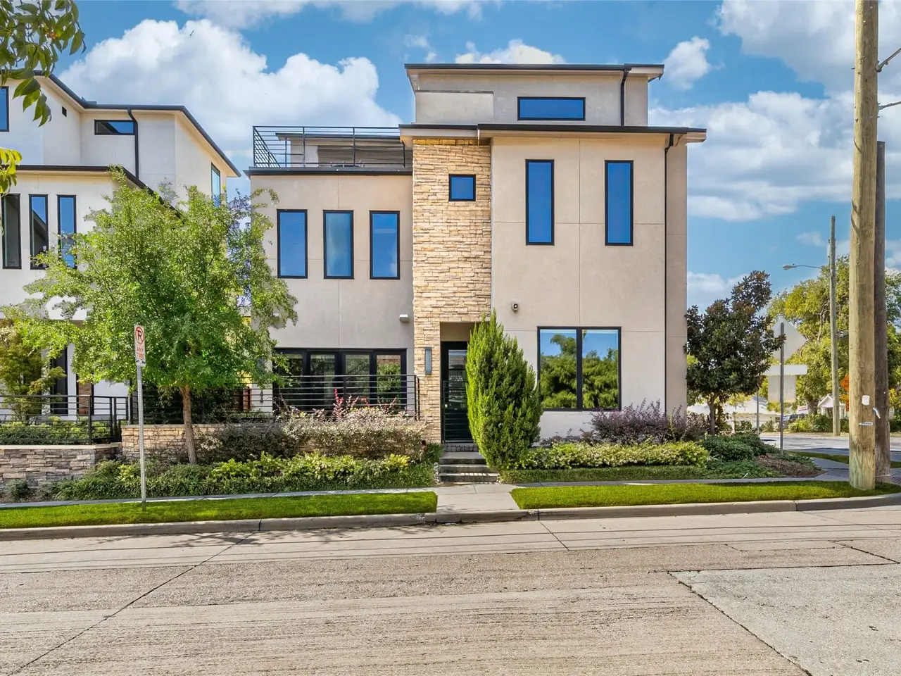 Modern Luxury in the Heart of the Maple CorridorWelcome to 4144 Entrada Way, a beautifully designed detached single-family home a rare find in the sought-after Maple Corridor. Built by Crescent Estates Custom Homes, this three-story residence offers 3,982 square feet of refined living space with 4 bedrooms, 5 baths, a private elevator, and a 2-car garage. A thoughtfully designed mother-in-law suite on the first level provides ultimate comfort and flexibility, perfect for guests or multi-generational living. The main level features an impressive gourmet kitchen with sleek quartz countertops, a gigantic island, and a full suite of Sub-Zero appliances, all flowing seamlessly into spacious, light-filled living and dining areas ideal for entertaining. The rooftop terrace is an entertainers dream, complete with an outdoor kitchen and breathtaking Dallas skyline views, offering the perfect space for evening gatherings or quiet relaxation under the stars. Perfectly positioned between Uptown and Downtown Dallas, this home places you just minutes from the citys vibrant restaurant and entertainment scene, while offering the privacy and comfort of a detached home a true rarity in this prime location. Experience the best of Maple Corridor living where modern design, luxury finishes, and urban convenience meet.