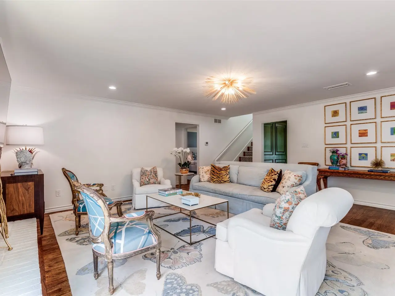 Welcome to this designer renovated Lake Highlands gem, a one of a kind home featured in design publications and curated by Emory McKim Design. Situated on a professionally landscaped and lighted quiet corner lot in the highly sought after, Moss Haven Elementary, this 4 bedroom, 2.5 bath property blends family functionality with elevated style and finishes. Offering an open floor plan and fully renovated in 2023, this special home boasts a custom kitchen with granite tops, Italian marble backsplash, Zline gas range, Bosch dishwasher, Monogram refrigerator, custom built cabinetry and window treatments. Open wet bar wrapped in iconic Laura Park wallpaper with icemaker and pass through window to custom Trex deck, grill, outdoor living area with pergola. Spacious first floor Primary suite with marble bath and custom tile and wallpaper, Formal Dining Room with avocado color walls and custom drapes, has pocket door to kitchen. Every space in this designer home is move in ready and thoughtfully designed. This home is the perfect blend of comfort, character and curb appeal.