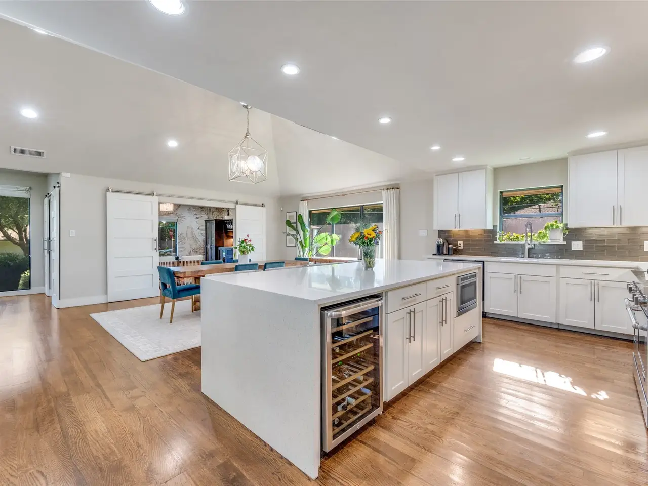 Wonderful remodel with a blend of modern design features and a floor plan ideal for family living and entertaining. Vaulted ceilings in the large combination living and dining area. Open kitchen with commercial grade appliances and a large island with seating. Adjacent dining room is perfect for today's lifestyle. All four bedrooms have ensuite bathrooms. Beautiful primary suite with a spacious, completely updated bathroom. Separate tub and shower with double vanities and a large walk-in closet. Nice covered patio with TV overlooking a huge backyard with mature trees and an electronic gate. This home backs up to the popular Northaven Trail, which is great for walking and biking.