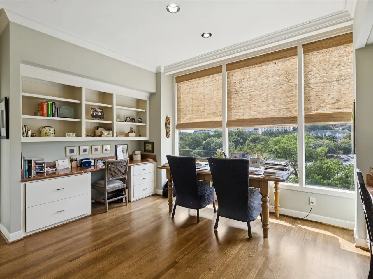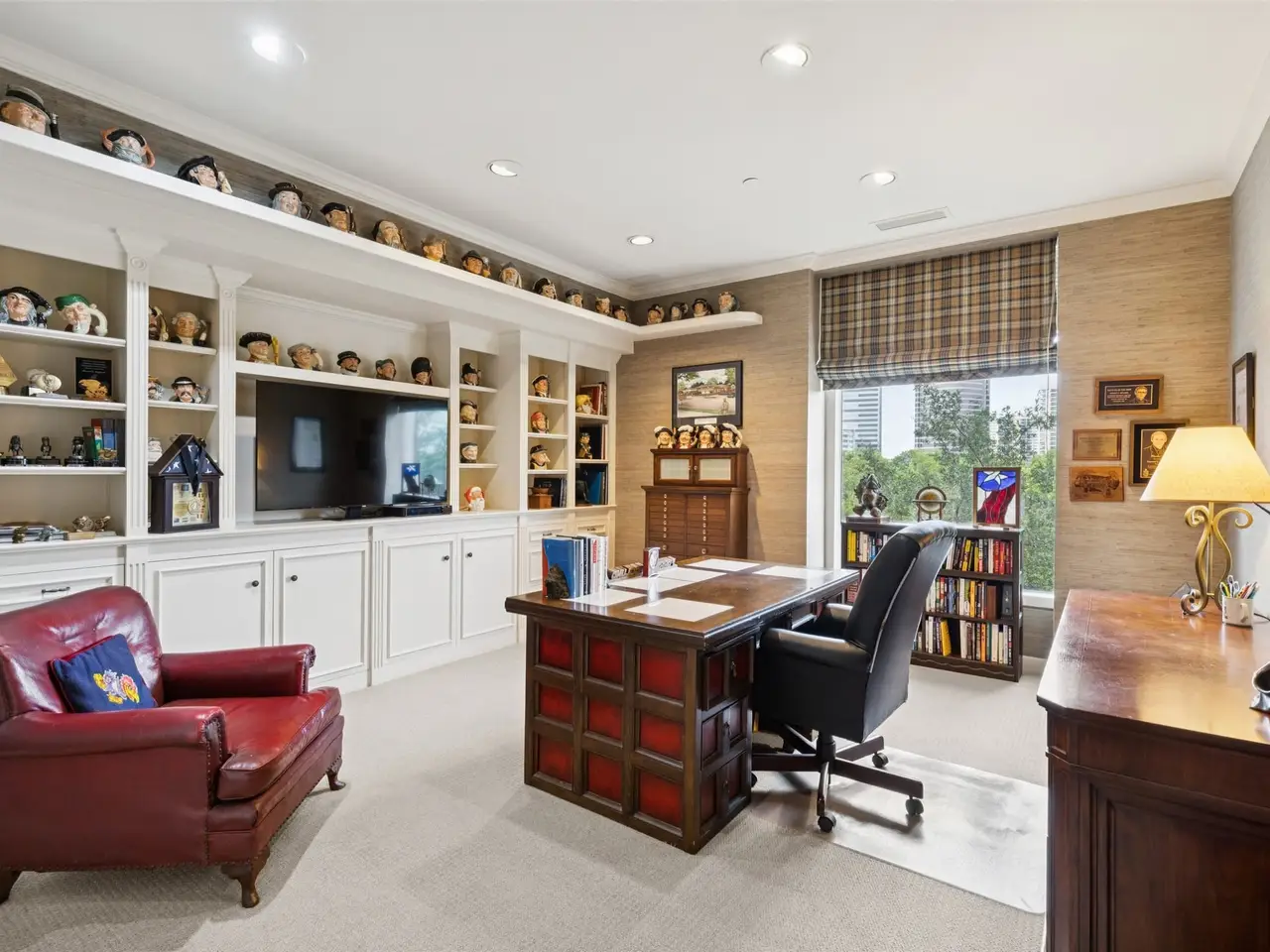 Experience the pinnacle of Dallas high-rise living at The Claridge, where two prestigious units have been seamlessly combined into an extraordinary 4-bedroom, 5.2-bath residence on tree-lined Turtle Creek Boulevard. Designed with both elegance and scale, this expansive home is ideal for gathering and connection. Multiple living areas transition effortlessly from quiet evenings to grand occasions, with a gracious dining room opening onto a spectacular balcony overlooking Turtle Creek. Between the dining and living rooms, a beautifully appointed wet bar with dedicated wine and beverage storage enhances the homes social flow. Three additional terraces extend the living experience outdoors, offering private retreats with panoramic views that define high-rise luxury. At the center of the home, a chef-inspired kitchen anchors the social spaces with premium appliances and a generous walk-in pantry. Every detail is designed to elevate hosting and simplify daily living. The primary suite offers a tranquil retreat, while three bedroom suites and thoughtfully appointed baths provide comfort and privacy for family and guests alike. Two versatile offices double as a additional bedrooms, adapting easily to your evolving needswhether a private workspace, guest suite, or creative studio. Beyond the residence, The Claridge delivers a lifestyle of unrivaled convenience and sophistication. Amenities include 24-hour concierge, valet, a state-of-the-art fitness center, racquetball court, pool, and club room with outdoor patio. Dedicated storage units and secure parking further enhance daily ease. Ideally situated on Turtle Creek Boulevard, the building places you moments from the Katy Trail, West Village, Highland Park, and Uptowns best dining and shopping. Timeless in design and unmatched in scale, this residence offers more than a homeit is a private retreat in one of Dallass most iconic addresses, where every day feels like a celebration of refined living.