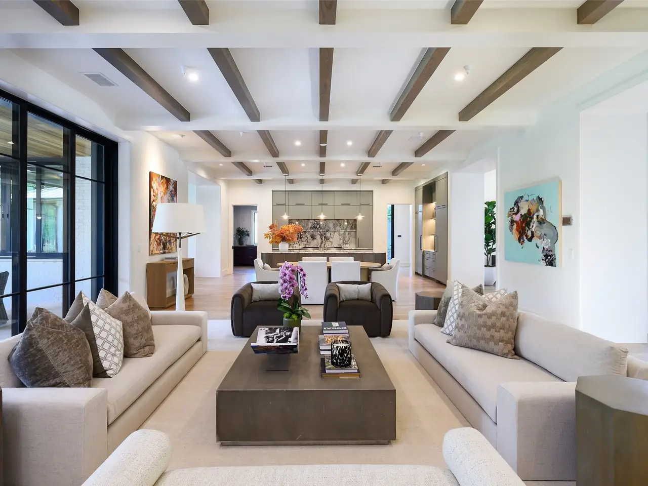 New construction masterpiece by Hudson Construction Group and Janson Luter Architects, located on a fully gated 0.675-acre lot in the prestigious heart of Preston Hollow. This light and bright home features an open floor plan designed for effortless entertaining year-round. The first floor offers a spacious primary suite, a guest bedroom, and formal living and dining areas, along with a gourmet kitchen that seamlessly flows into the breakfast area. Upstairs, the second floor features three generous ensuite bedrooms and a media room, a flexible space that can serve as a sixth bedroom or a fully equipped gym. Additional highlights include a large walk-in pantry with a scullery kitchen, two utility rooms, a private study, a comfortable lounge room with a sizable wine closet, and an elevator for easy access to all levels. Step outside to your backyard oasis, complete with a living area, sparkling pool, sports court, and a spacious yard.