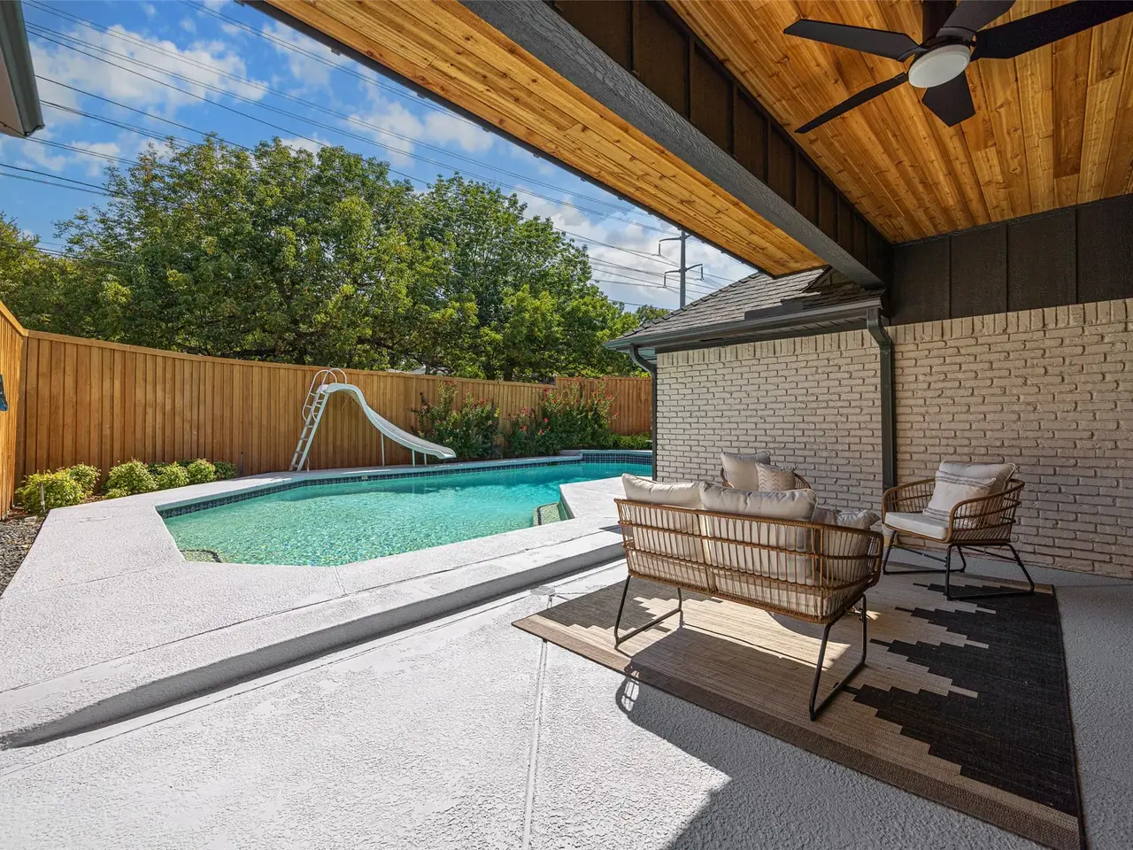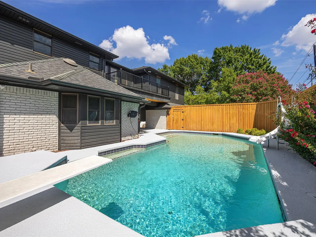 Stunning, fully updated modern masterpiece in sought-after Merriman Park, Lake Highlands. This 6-bedroom showstopper blends designer style with luxurious living - featuring a resort-style pool, media room, game room, and custom finishes throughout.Step through the striking steel and glass entry into soaring vaulted spaces with real hardwood floors, fresh finishes, and a custom staircase. The gourmet kitchen offers an oversized stone island, floor-to-ceiling woodgrain cabinetry, high-end stainless Italian appliances, gas range, breakfast nook, and large pantry.The primary suite is a serene retreat with a spa-like bathcircular soaking tub, glass shower, sauna, Japanese bidet, custom built-insand a closet the size of a bedroom. Three additional bedrooms downstairs provide flexible living options.Upstairs includes a spacious game room with a built-in kitchenette, media room with patio access, plus three more bedrooms and a media room. The upstairs patio overlooks the pool and adjacent greenbelt with scenic trails.An oversized three-car garage and exceptional upgrades make this a rare opportunity in one of Dallass most desirable neighborhoods. Agents and buyers to verify all information.