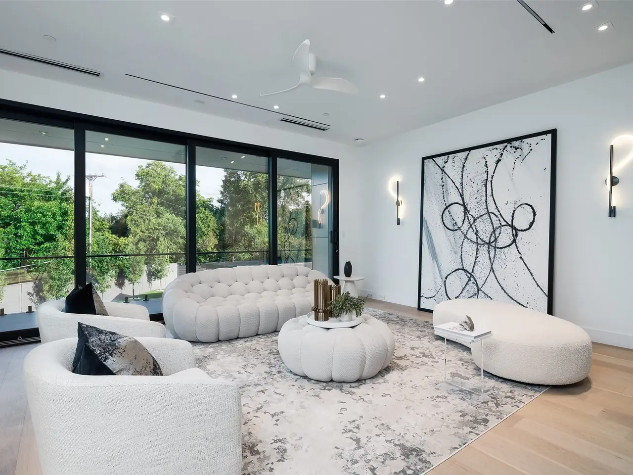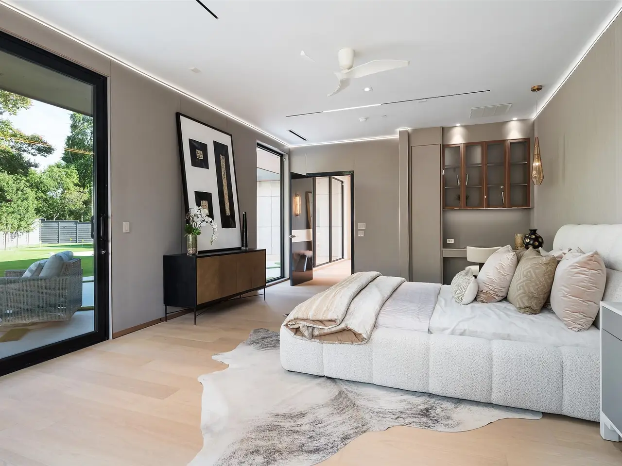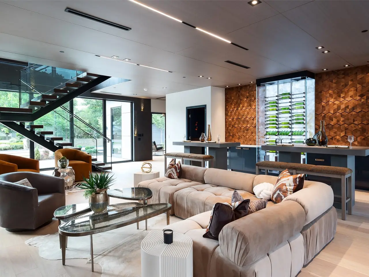 Nestled on an expansive .82-acre cul-de-sac lot in prestigious Preston Hollow, this newly constructed architectural marvel exudes unparalleled sophistication with 8500 SF in main house and a 600 SF casita. The marble slab cladding & circular driveway offers the WOW factor upon arriving at this masterpiece. Step inside & be greeted by soaring 20 ceilings and walls of glass that flood the home with natural light, creating an atmosphere of luminous refinement. The flawless first-floor design seamlessly integrates form and function, with formal living and dining areas adorned with a double-sided marble fireplace, luxurious wall paneling, & magnetic LED lighting. The stylish club room features high-top tables, a sleek bar, & a climate-controlled wine cellar. Sliding glass walls artfully separate the expansive gourmet kitchen, a culinary showpiece appointed with stone countertops, double islands, sleek Florense cabinetry, Thermador appliances, & designer lighting. A spacious pantry & separate back kitchen ensure flawless functionality. Just beyond, a media room invites guests to indulge in cinematic experiences or relax in casual luxury. The primary suite is a private sanctuary with a spa-like bathroom clad in porcelain onyx and marble, a dramatic black bathtub, impeccably appointed closets and built-in coffee bar. A secondary upstairs suite, an additional laundry room, and a stunning flamed Azure marble staircase with glass railing and walnut treads further elevate the home. Outdoor living is a symphony of luxury, boasting a heated pool with a mesmerizing Alex Turco water feature, a sunken firepit, an outdoor kitchen, and a turfed yard adorned with cherry trees and landscape lighting. A private casita with a kitchenette, full bath, and sauna offers impeccable guest accommodations or wellness retreat. Completing this modern marvel is a 4-car garage enhanced with designer lighting and bespoke wall coverings. This is the pinnacle of modern luxury living in Preston Hollow.