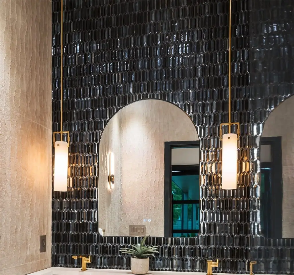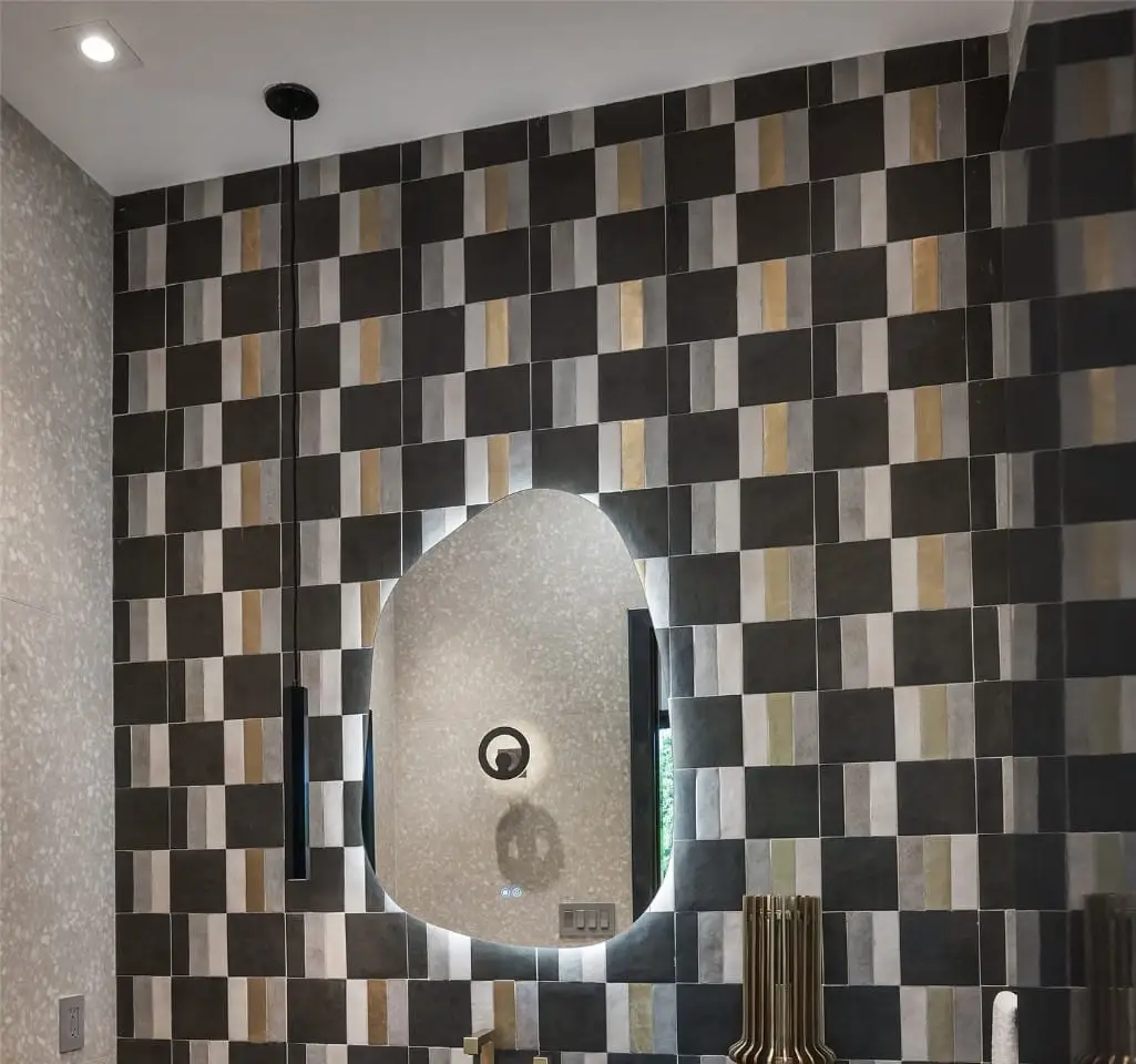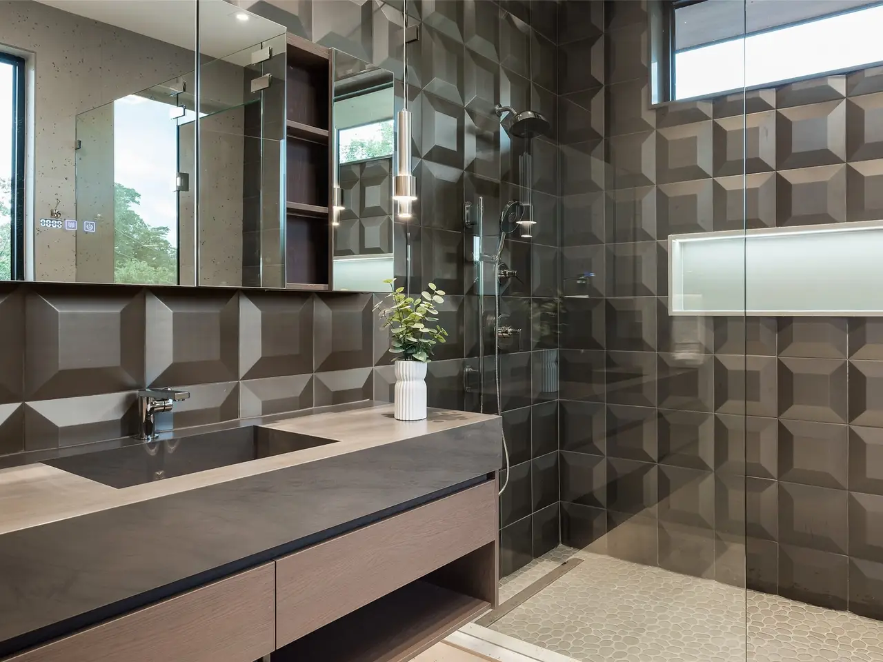 Spa-like bathroom with porcelain onyx and marble