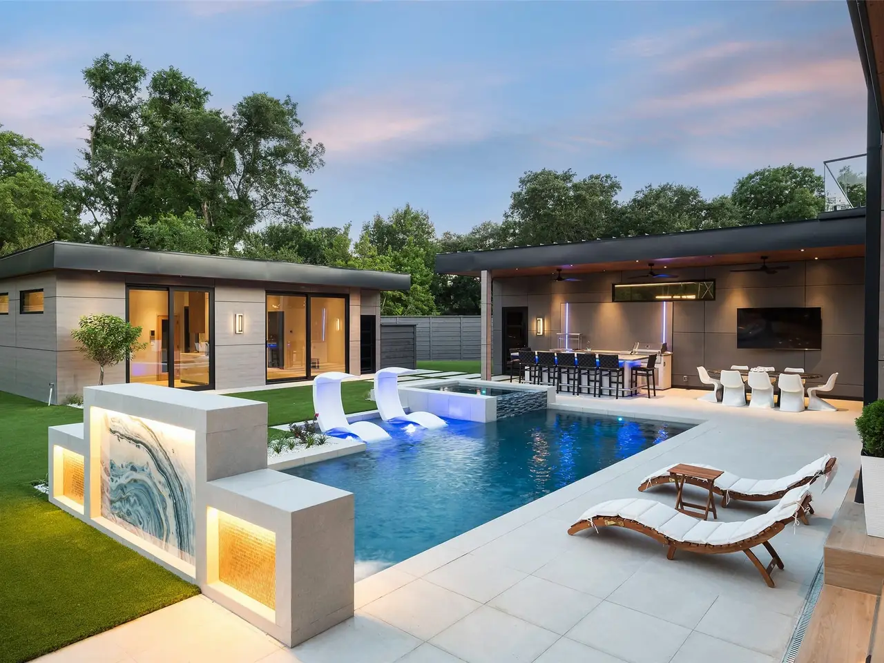 Heated pool with Alex Turco water feature
