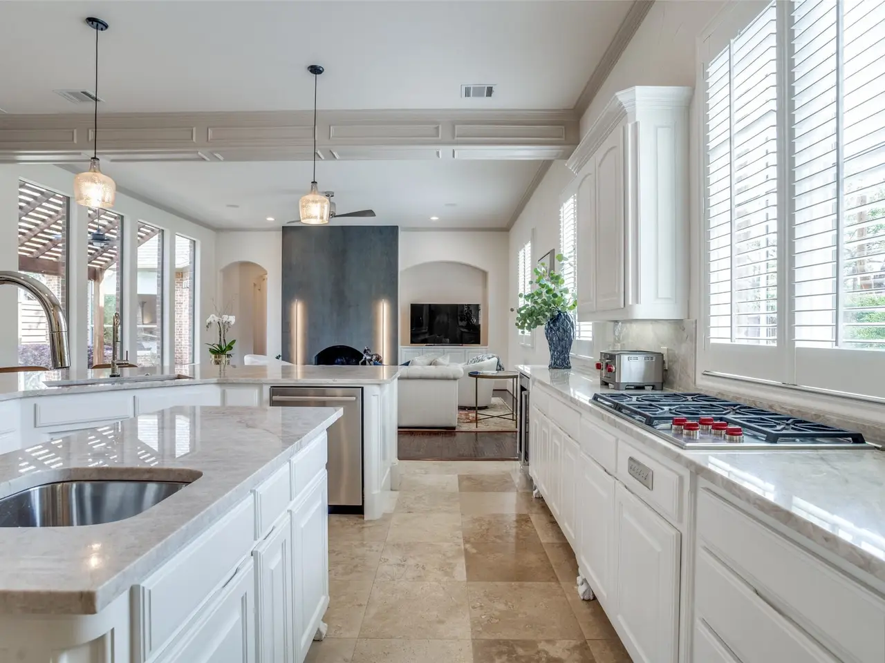 Expansive quartzite surfaces and custom cabinetry