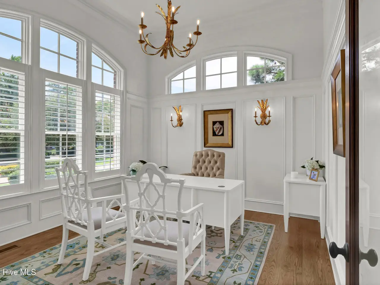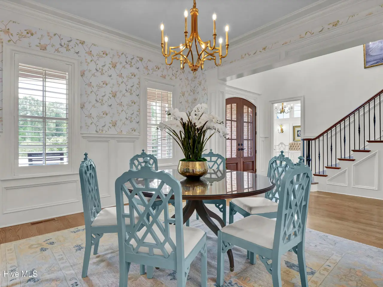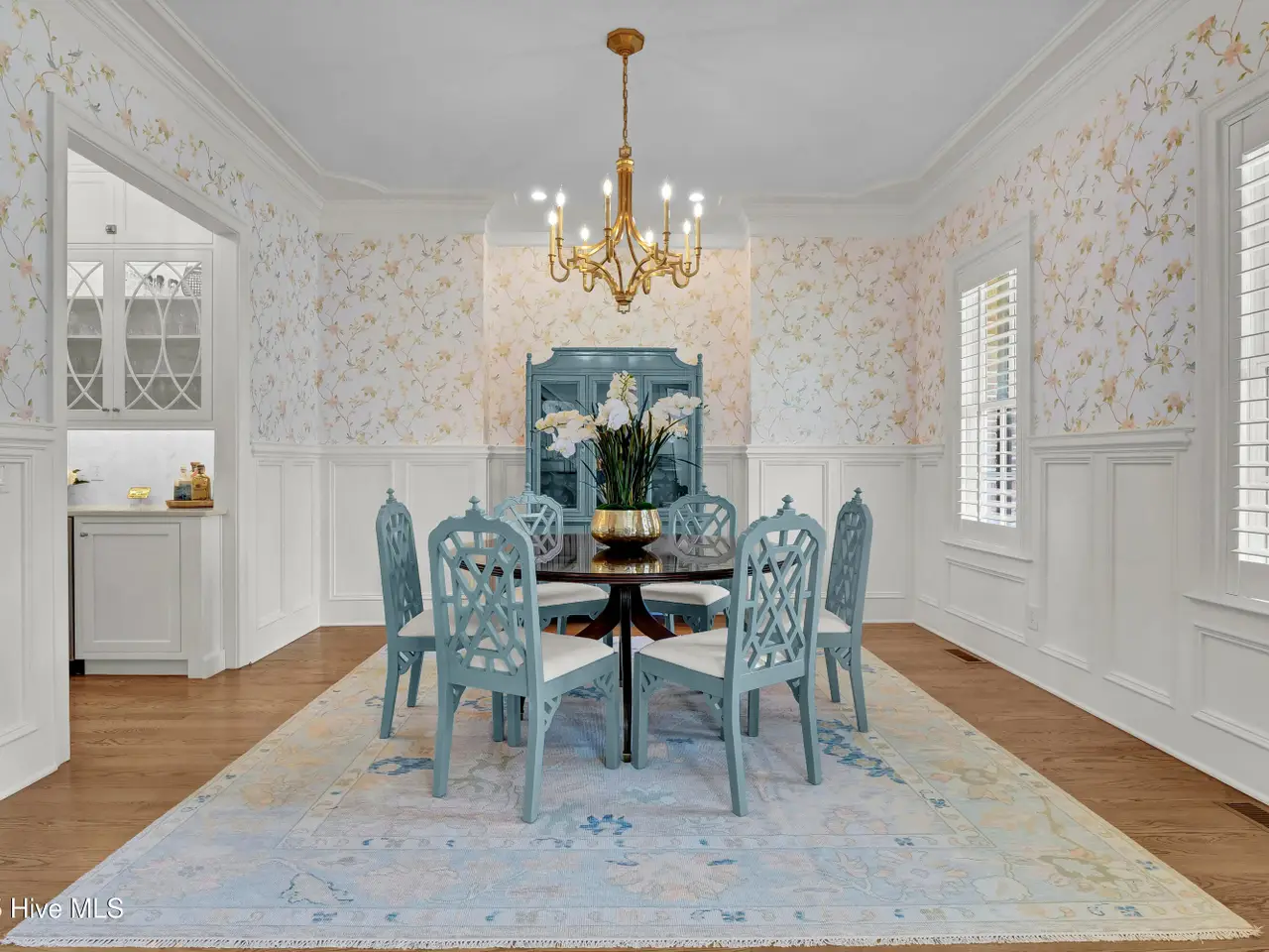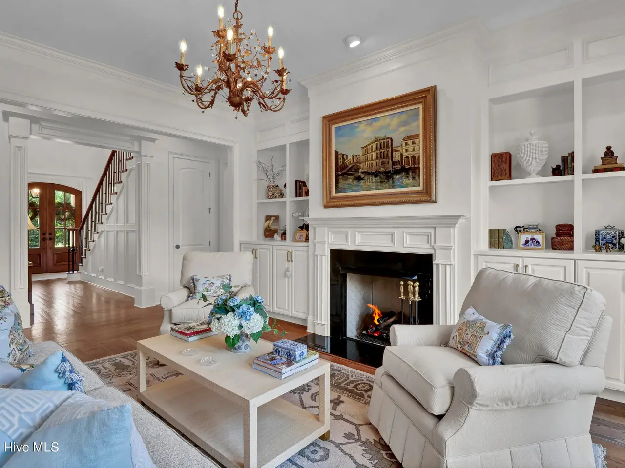 • Hardwood floors, custom built-ins, detailed crown moldings throughout