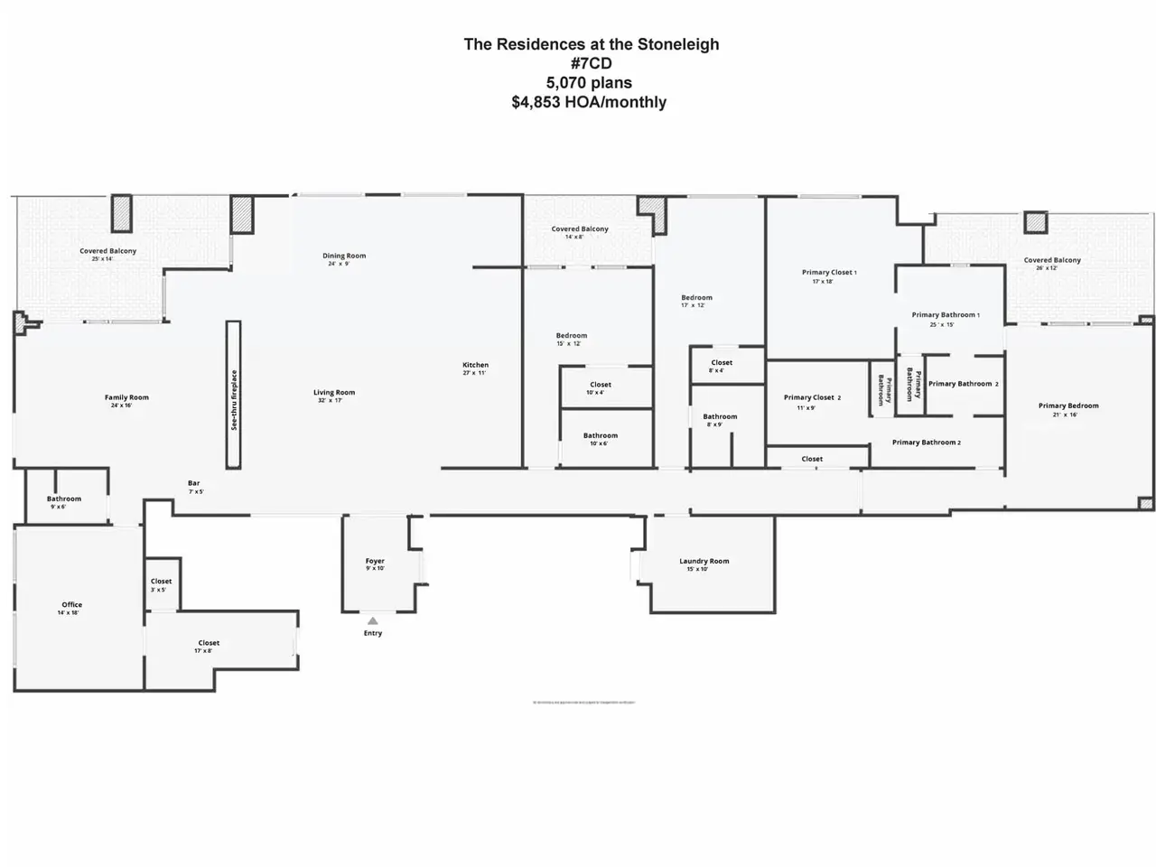5-star amenities: valet, fitness center, pool, theater Outdoor fireplaces & grills