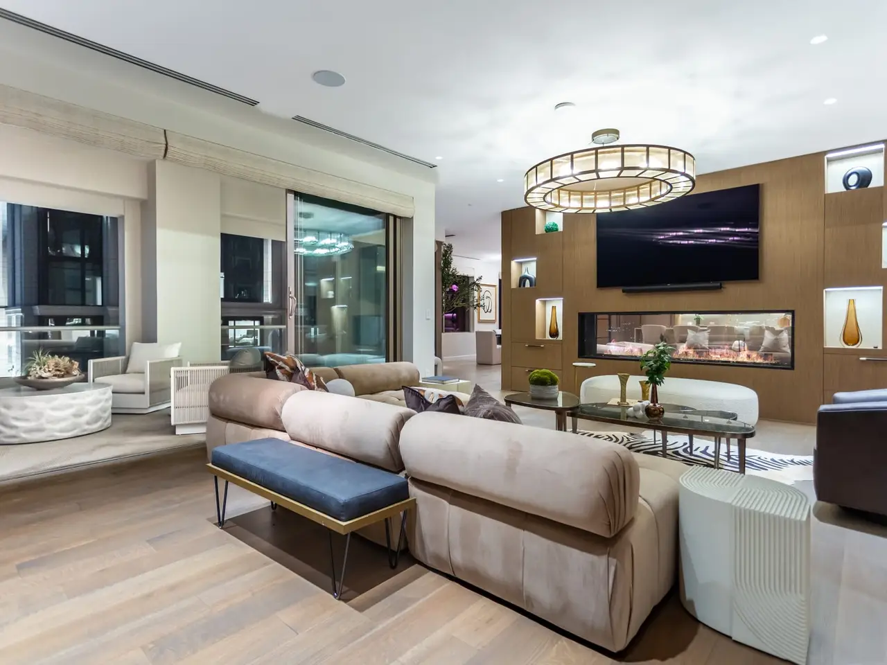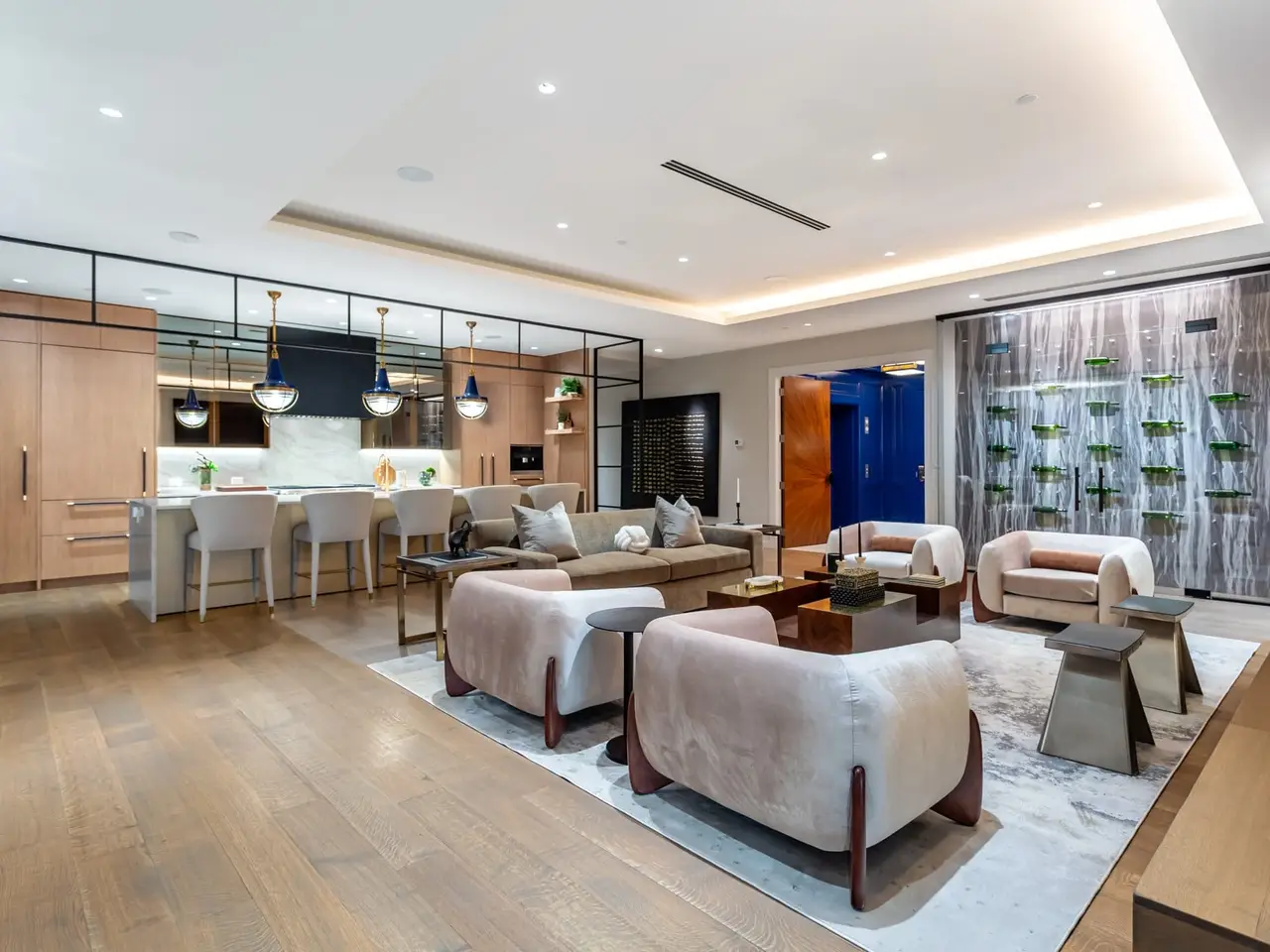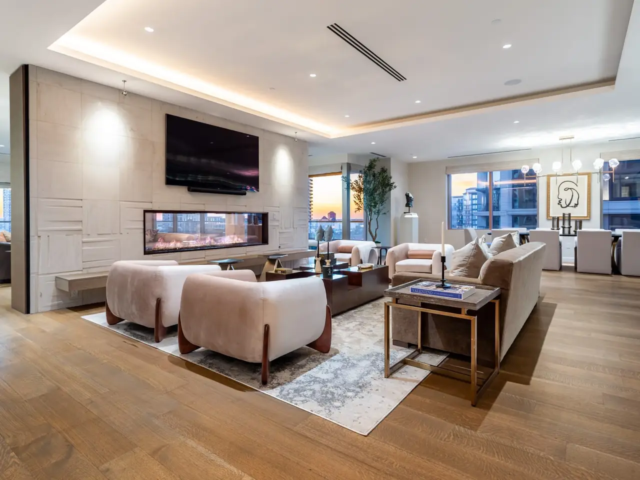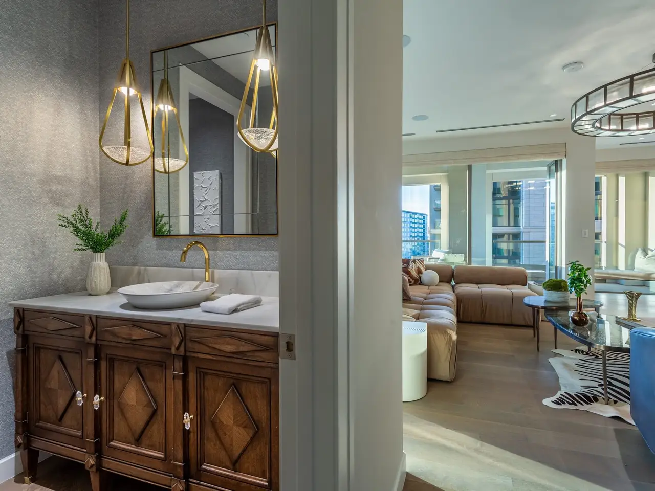 Every detail tells a story of artistry & intention in this bespoke 5,070 sq ft double unit at The Stoneleigh Residences. A masterpiece in the sky where craftsmanship meets couture living. This bespoke residence is a rare one-owner custom home blending timeless design, luxurious materials, & modern sophistication. Every inch is artfully curated with Ornare cabinetry, Aria Quartzite countertops, Ann Sacks tile, Conrad motorized shades, & premier Wolf, Sub-Zero, Meile, and Dacor appliancesincluding a Scotsman nugget ice maker & in-wall Meile coffee system. A stunning wine wall with built-in Dacor dispenser anchors the open-concept Living-Dining-Kitchen, where a see-through fireplace creates a seamless connection to the Family Room. The private elevator vestibule impresses with inlaid marble floor & double starburst wood doors, while a secondary elevator opens discreetly to the Utility Room for deliveries. A flexible bonus roomperfect for a media, game room, or officeoffers leather walls, built-ins, TV & blackout shades with a huge storage closet. The Primary Suite is an oasis of serenity with hand-painted embroidered wallpaper, dual Ornare closets & dual lavish marble baths featuring a shared oversized double shower. Two spacious balconies, one with a four panel double opening, invite you to savor skyline sunsets or morning coffee with city views & seamlessly invite the outside in. Residents enjoy 5-star amenities including valet, concierge, fitness center, 20-person theater, banquet room with catering kitchen, owners lounge, meeting rooms, pool, spa, outdoor fireplaces & grills, a pergola & a treed pet park. Nestled in Uptown, Dallas most vibrant corridor near Klyde Warren Park, Victory Park, the #1 Arts District in the U.S., Design District, The Katy Trail, & downtown, this is luxury redefinedelevated, exclusive & exquisitely detailed. Steps away from four hotels & some of Dallas' finest restaurants, shopping & entertainment venues. Convenient to 5 highways.