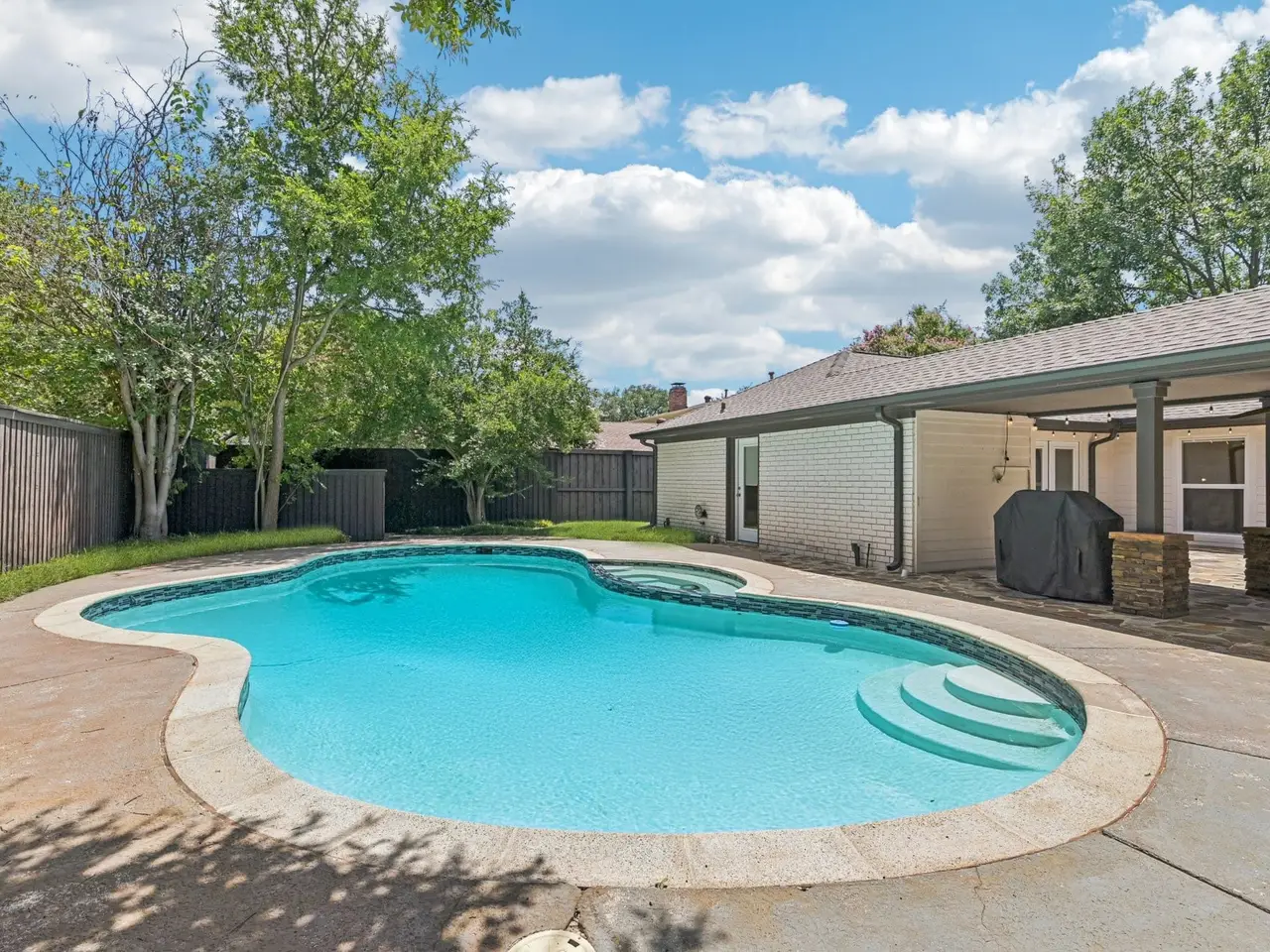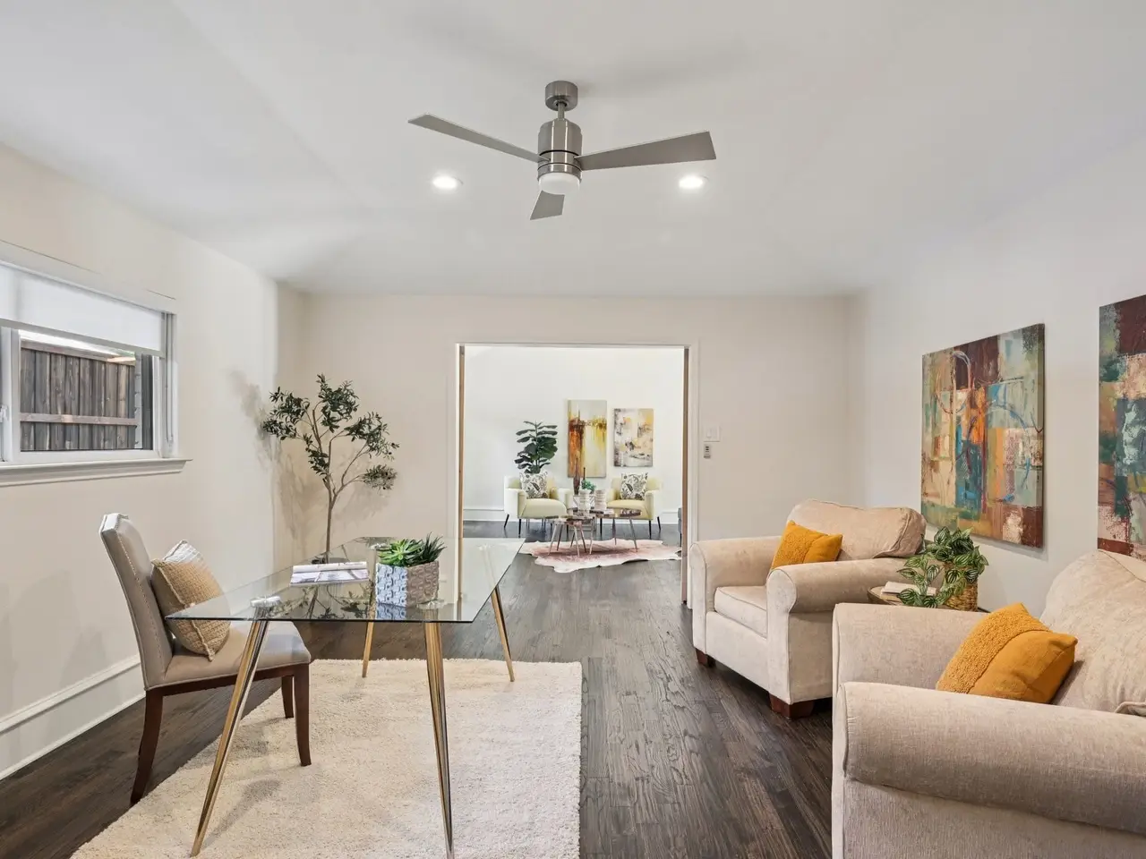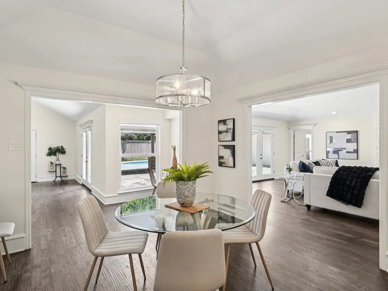 Located in the heart of Preston Hollow, Windsor Park This stunning one-story home was beautifully updated and is truly move in ready. Designed with an open floor plan that flows effortlessly from indoor to outdoor living, this home is ideal for both everyday comfort and stylish entertaining. Gorgeous picture windows and multiple sets of French doors flood the interiors with natural light and frame views of the patio and sparkling pool. The spacious main living area features a wall of French doors that open to approximately 1,000 square feet of patio space, perfect for relaxing or hosting gatherings. Inside, the home offers generous bedrooms, multiple living areas, a media room, a dedicated office, a formal dining room, and a beautifully updated kitchen equipped with stainless steel appliances and a custom coffee-wine bar. The 5th bedroom is currently staged as an office. It is the only bedroom on the opposite side of the home. Every detail of this home has been thoughtfully designed to blend elegance, comfort, and functionality.