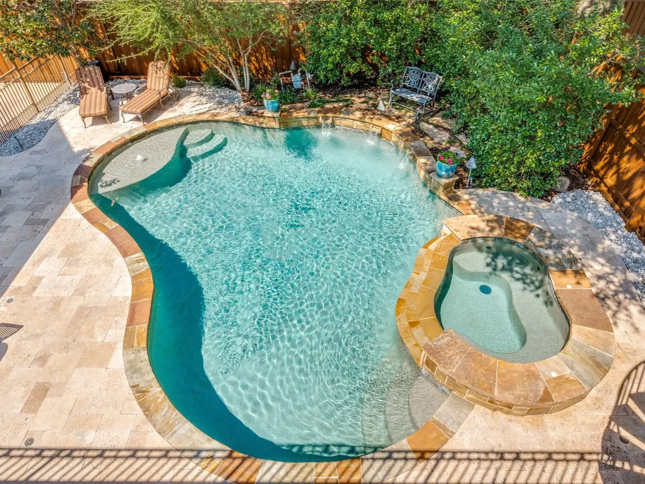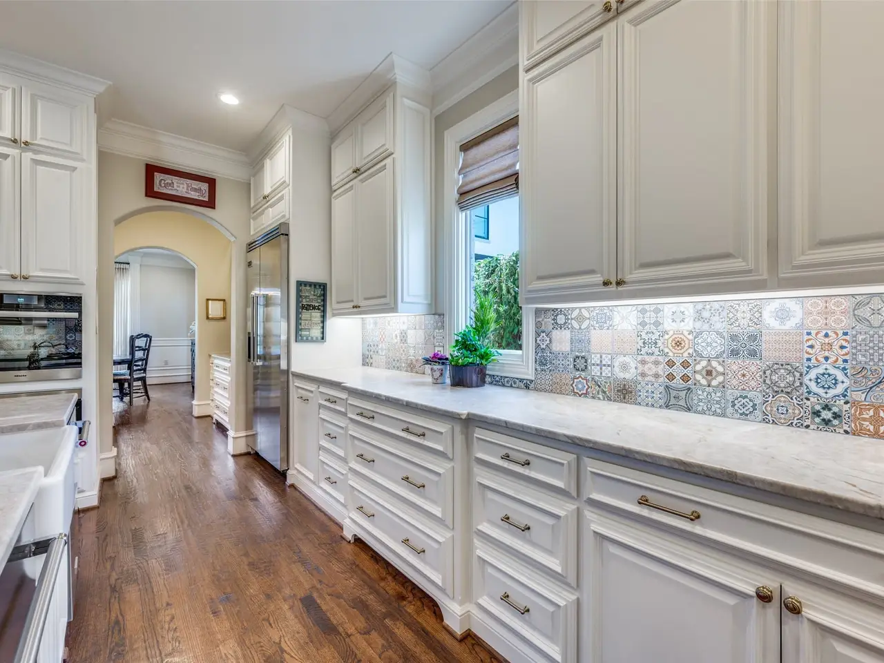 Discover timeless elegance and modern comfort in this 5,834 sq. ft. home set on a generous 70 x 158 ft. lot within the highly sought-after Highland Park ISD. With 4 bedrooms, 4 full baths, 3 half baths, 3 living areas, and a spacious study, this residence combines thoughtful design with exceptional updates throughout. At the heart of the home is a stunningly remodeled kitchen with Taj Mahal quartzite countertops, an oversized island, built-in Viking refrigerator, Viking gas range, Miele combination steam oven, and dual dishwashers. A butlers pantry and scullery provide additional prep and cleanup areas, making hosting effortless. The kitchen opens to the family room, where expansive doors lead to a covered porch with remote-controlled screens overlooking the sparkling saltwater pool and spa. Outdoor living is elevated with a built-in grill, refrigerator, and fireplace, plus generous dining and lounge areas that create the ultimate gathering space. The downstairs bedroom, currently used as an exercise room, also works beautifully as a private guest suite. Upstairs, the primary suite offers a true retreat with a spa-inspired bath, custom his-and-her closets, and a large balcony overlooking the pool - perfect for morning coffee or anytime entertaining space. Two additional bedrooms with en suite baths, a playroom with an oversized walk-in closet, a well-appointed laundry room, bonus office space, and a half bath complete the second floor. Every detail has been carefully considered, from abundant storage to an extensive list of recent upgrades. With undeniable curb appeal, a functional floor plan, and luxury amenities, this home delivers an unmatched lifestyle in one of Dallas’s most desirable neighborhoods.