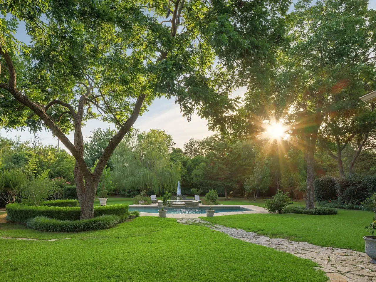 Nestled in one of Dallas' coveted hidden enclaves of Preston Hollow, this timeless French Transitional estate is where elegance meets serenity on a nearly full acre of exquisitely landscaped grounds. Tucked behind mature trees and set amid lush lawns, a sparkling pool and expansive green space are perfect for play, pets, your dream cabana, or guest house. Built and cherished by a single family since 1999, this four bedroom sanctuary is more than a home and waiting for someone to make it their own. A grand entry sets the tone, flanked by formal spaces and flowing seamlessly into a gourmet kitchen made for celebration. Step outside and let the home extend its armsretractable screens open to an outdoor living area that lives like a second great room, perfect for quiet mornings or evening entertaining. Both a formal library and a second office or nursery grace the expansive first level. Multiple staircases rise to spacious secondary suites and game room, while the downstairs primary suite is a haven all its ownfeaturing a spa-like bath, tranquil views, and a hidden safe room for peace of mind. From the stately circular drive to the three-car garage with extra storage, every inch of this home whispers refinement and quiet luxury. Your Preston Hollow retreat awaits.