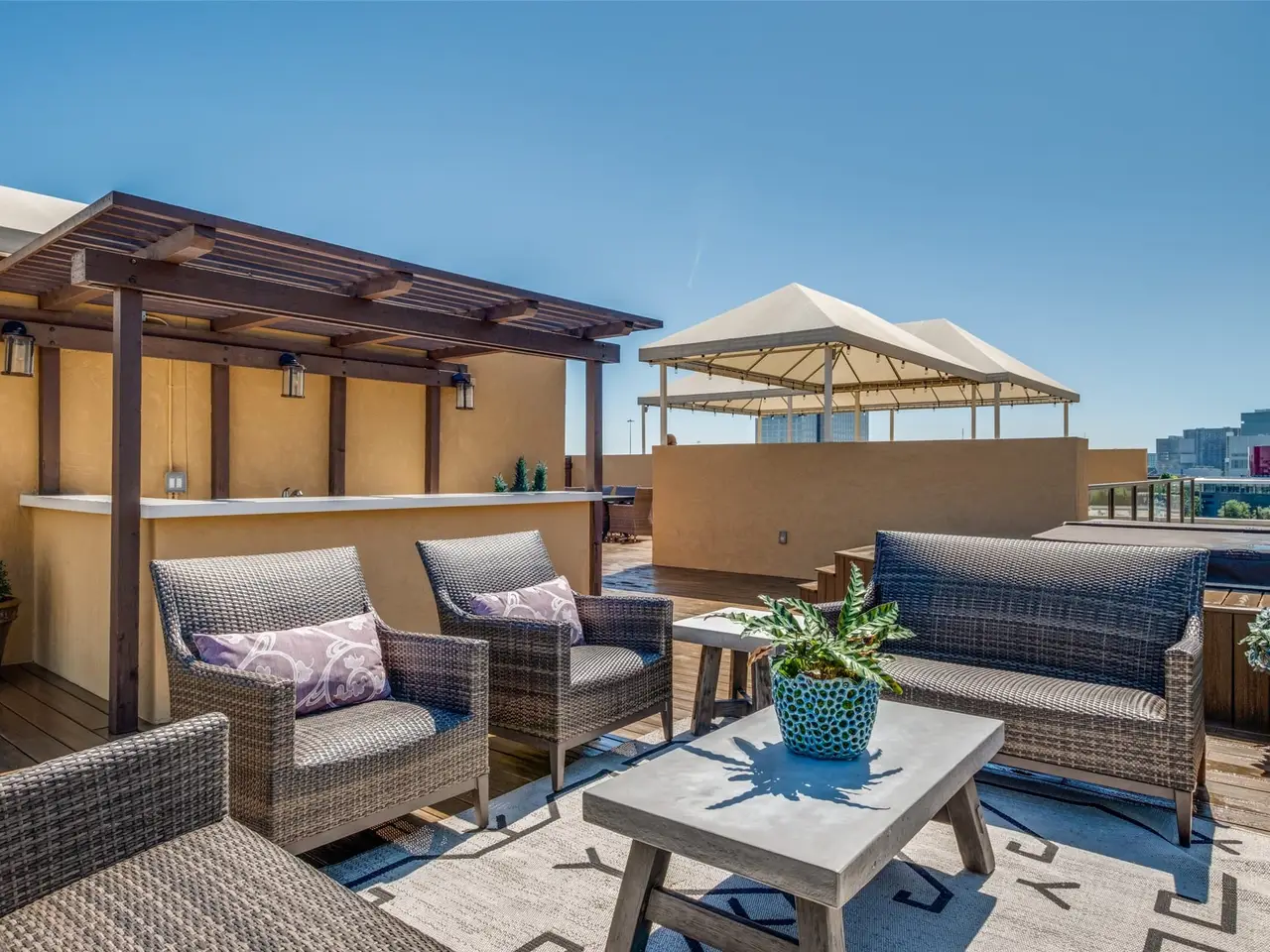 Experience luxury living in this immaculate 2-bedroom, 3.5-bath condo spanning 2,150 square feet of beautifully designed space offering 12 ceilings and dramatic details and lighting found only in the finest homes. Perched on the top floor of the iconic Hotel ZaZa, this residence offers breathtaking, unobstructed views of downtown Dallas and the Crescent from your own private cabana and the brand-new rooftop entertainment deck. Enjoy direct access to the hotels world-class amenities, including the spa, fine dining, and vibrant nightlife, perfect for entertaining out-of-town guests or indulging in a quick getaway without ever leaving home. Located with quick access to I-75, the Tollway, and I-35, this property is just steps from premier restaurants, museums, and boutiques. Its also a short drive to Highland Park and Preston Hollow. Live in one of Dallas' most coveted neighborhoods with unmatched style, comfort, and convenience.