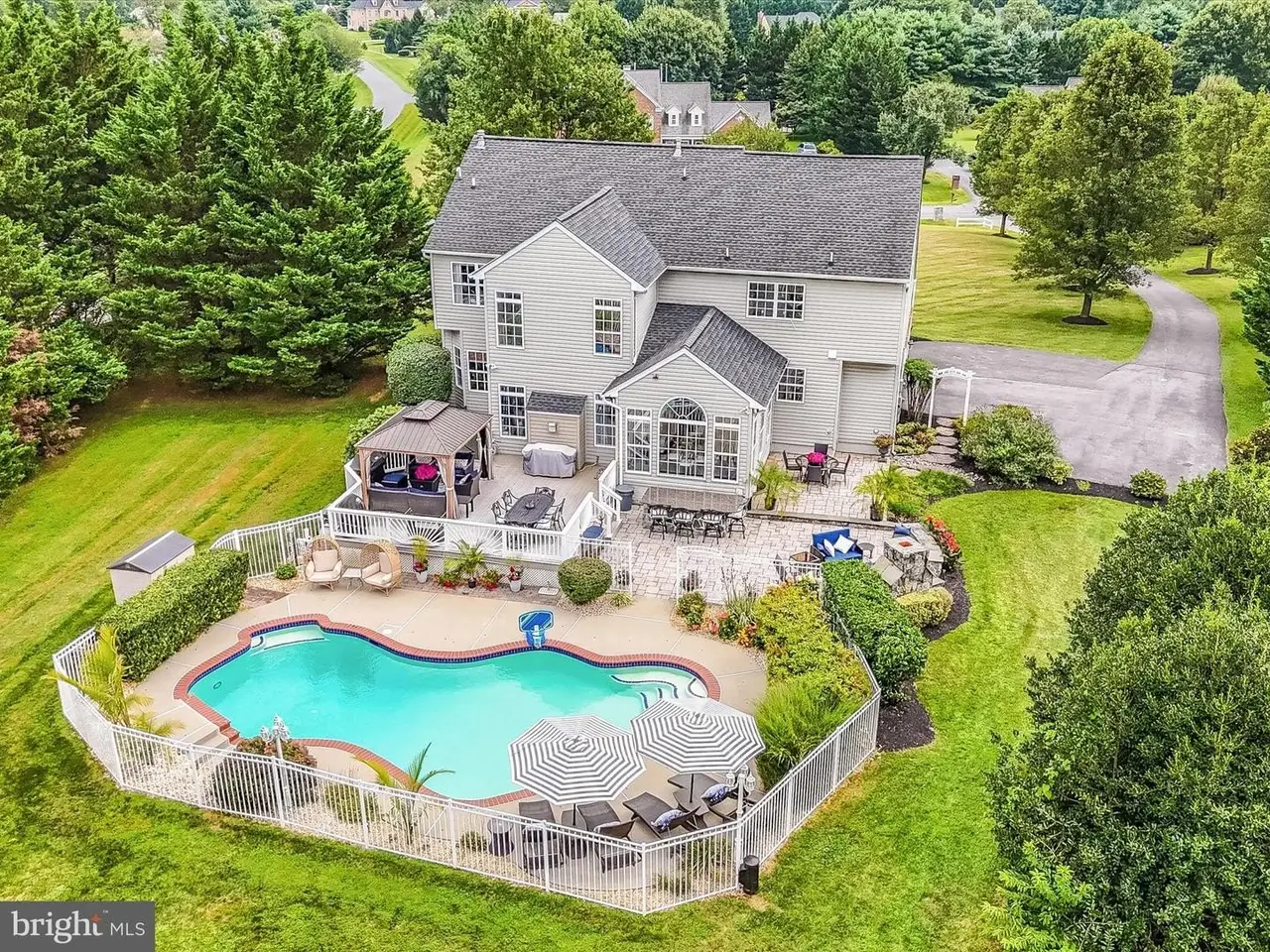 Welcome to this beautifully designed four bedroom, 3.5 bath home that effortlessly combines luxury and comfort. Nestled on a 1.4-acre lot in a prime location, this property offers over 5400 square feet of spacious living areas and a private oasis that's perfect for both relaxation and entertaining. The open concept family room is the heart of the home, complete with a cozy fireplace perfect for gathering. Main level features inviting living room and dining room in addition to home office overlooking the backyard. Spacious, updated kitchen with Stainless Steel appliances, sleek Quartzite natural stone counter tops, large island and wine bar. Step into the light-filled sunroom that offers a peaceful retreat with views of the lush backyard, making it an ideal spot for relaxing with a book or enjoying morning coffee. The finished basement is an entertainer's paradise, with a stylish bar area ideal for hosting friends and family. Outside you'll find a large patio, deck, sparkling pool, stone fireplace and bar with granite countertop making this the perfect space for outdoor relaxation and summer entertaining. Private backyard overlooks open space with beautiful views of the sunset! This home offers the ultimate in modern living with every detail designed for convenience and luxury - look no further, your home is here!