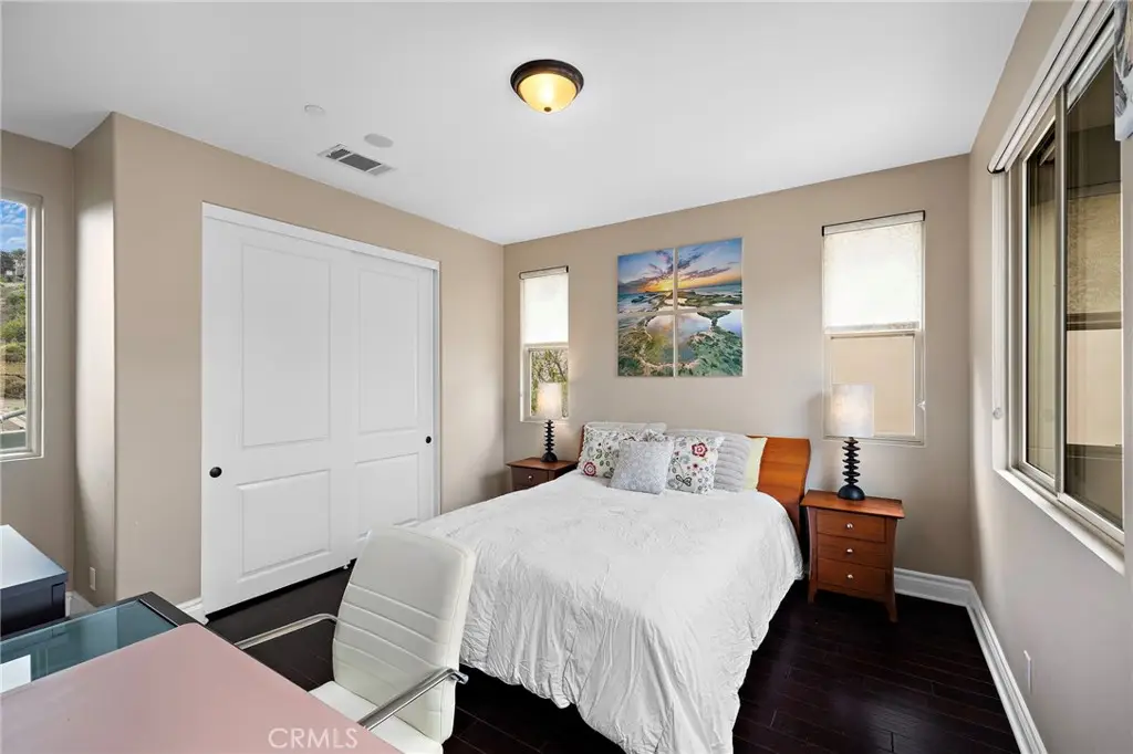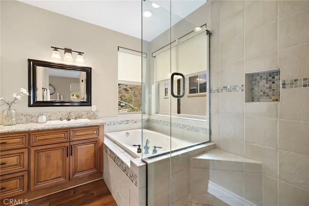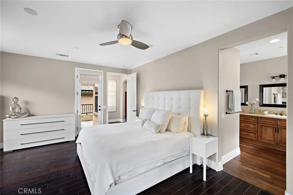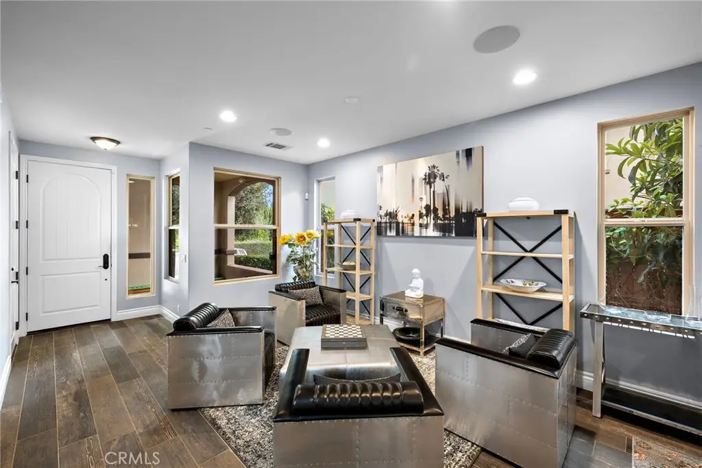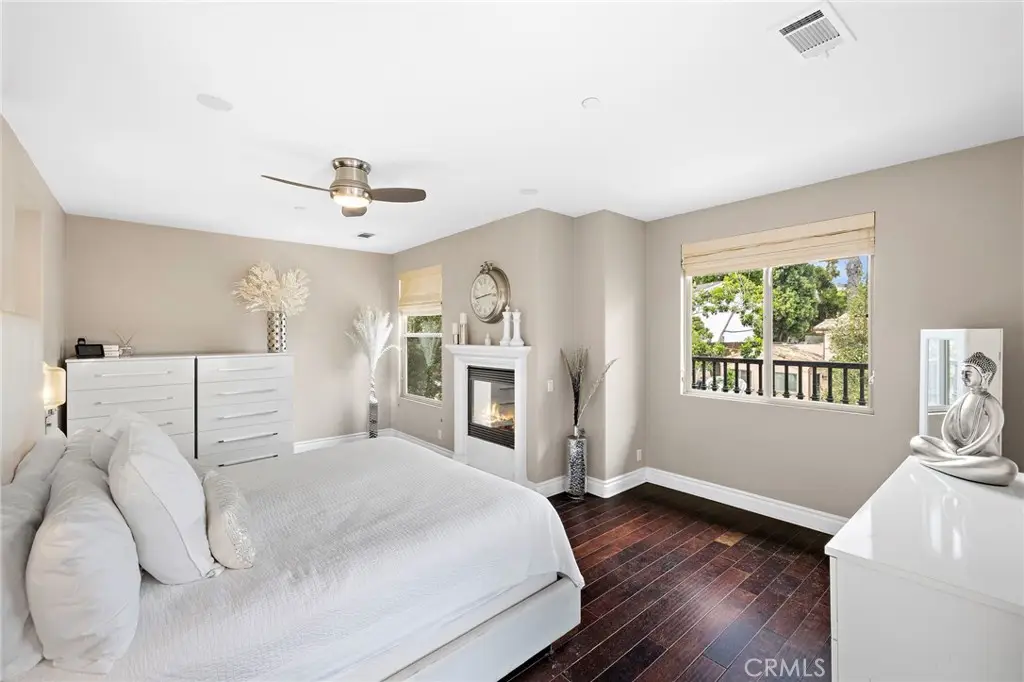 Stunning California-Mediterranean semi-custom home nestled in an exclusive enclave of just seven homes in Seabright Cove and completed in 2011 with mountain & park views. Thoughtfully designed with both elegance and comfort in mind, this spacious residence offers 4 bedrooms, 3.5 baths, and a versatile bonus room upstairs that is currently used as a gym and has doors out to the front balcony with city lights, mountain & park views. Soaring ceilings and abundant natural light enhance the open layout, which includes formal living and dining rooms, and a beautifully appointed eat-in kitchen featuring rich wood cabinetry, with a pantry, quartz countertops, custom stainless steel backsplash, and a seamless flow into the inviting family room with custom fireplace. Large pantry under the stairs for added storage capabilities. The heart of the home is a large central courtyard--perfect for indoor-outdoor entertaining and relaxed California living with beautiful fire feature and bistro lighting for added ambiance. Side yard has four mature fruit trees- Meyer lemon, guava, tangerine, & loquat. Additionally, the home has AC, is wired with CAT 6, has surround sound speakers, and comes prepped for cameras and a whole home security system. Upstairs, the luxurious primary suite boasts a spa-inspired bath & is a serene retreat also with fireplace, walk in closet and dual sinks with new faucets and separate shower and tub. Ideally located just minutes from the Dana Point Harbor currently undergoing a major renovation, the Lantern District, and some of California's most iconic beaches & 5 star resorts, this home offers coastal charm, modern comfort, and timeless style.