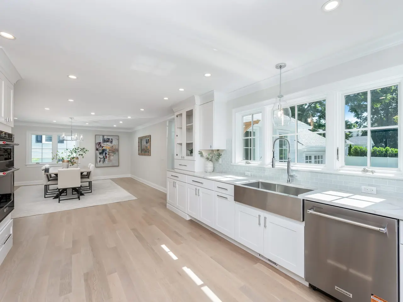 This newly re-built 4-bedroom, 3-bath Colonial offers 2400 sq feet of finely crafted living space on a level .25-acre lot. Set on the corner of Anthony Lane and a cul-de-sac, the property pairs neighborhood charm with privacy. Enjoy the outdoors in a newly fenced yard with professional landscaping and a full irrigation system. Inside, the open layout is defined by natural light and superior craftsmanship. White oak floors run throughout the home, complemented by custom millwork and oversized windows. The living room's fireplace, framed by built-in cabinetry, provides both warmth and architectural interest.The chef's kitchen impresses with custom cabinetry, quartz countertops, and high-performance energy-efficient appliances. A large mudroom with integrated laundry is designed for durability and organization. A first-floor bedroom offers versatility as an office, guest suite, den or playroom. The full bath is finished with frameless glass shower ensuring comfort and style. Upstairs, three bedrooms feature ample closets and abundant light. The hall bath includes a glass-enclosed tub/shower, dual windows, heated floor. The primary suite features two large closets and bath highlighted by a walk-in shower, heated floors, double sink vanity and polished finishes. With zoned propane heating, central air, and a balance of classic proportions and modern amenities this home combines elegance and functionality less than one mile to shops, dining and transportation of Noroton Heights.