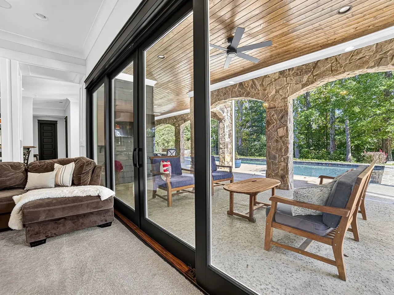 Resort-Style Luxury Estate Backing to Protected Greenspace Discover a rare blend of timeless craftsmanship and modern luxury in this cedar shake and stone estate. Designed for both everyday living and unforgettable entertaining, the home offers a true resort lifestyle. Outdoors, enjoy multiple living spaces screened porch, balcony, patios, and a spectacular pool with diving rock, spa hot tub, and dedicated pool bath. Entertain with a full outdoor kitchen, gas-start fireplace, fire pit, half-court basketball, turf putting green, and grassy play yard.Inside, soaring ceilings, elegant moldings, hardwoods, and smart-home features set the stage. The chef's kitchen shines with dual islands, Thermador appliances, walk-in pantry, and breakfast nook. The coffered-ceiling living room, keeping room, and screened porch make gatherings seamless.The main-level owner's suite is a retreat with vaulted ceilings, fireplace, porch access, and spa-inspired bath featuring heated marble floors, freestanding tub, oversized shower, and custom closets. Upstairs offers a study loft, three bedrooms with ensuite/shared baths, and unique bonus spaces.The finished lower level boasts a wine cellar, custom bar, 120-inch home theater, office, exercise room, and guest suite with pool access.This extraordinary estate delivers luxury, recreation, and nature right at home.