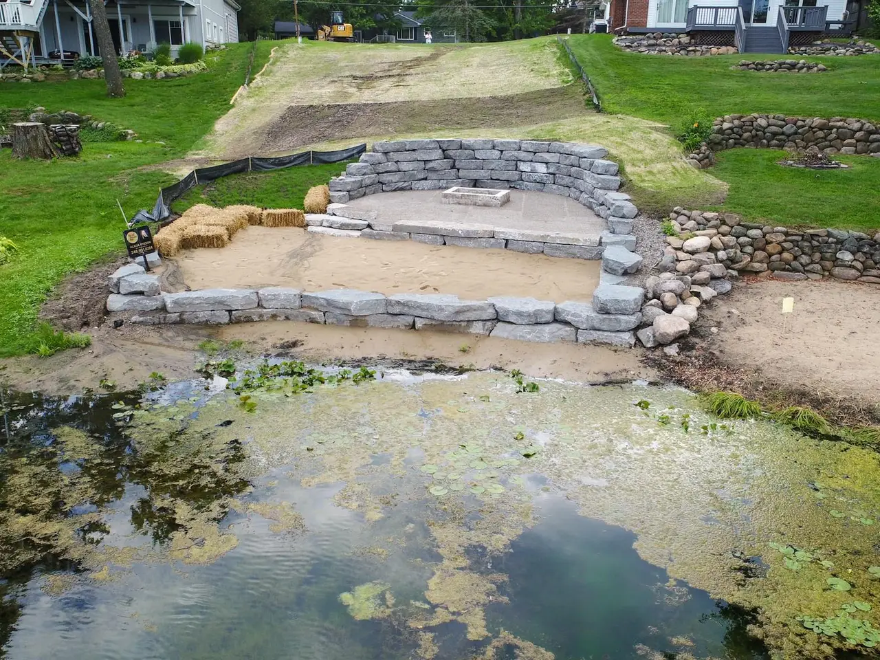 Lakefront property with luxurious limestone beach area