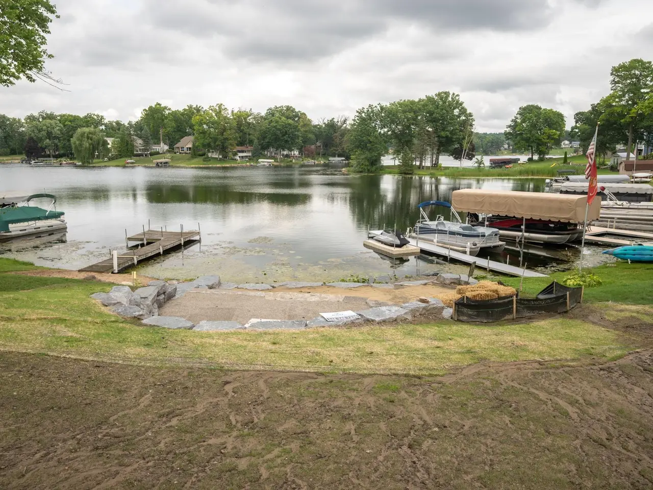 **Stunning Lakefront Lot- Your Dream Oasis Awaits!** New Construction on Dixie Lake, to start upon sale! Discover the ultimate opportunity to build your dream home on this magnificent lot situated on an all-sports Dixie lake, within highly sought Award winning Clarkston School District, one of the only remaining vacant lots on All Sports Lake Front within Clarkston School District. This beautiful piece of land is proudly owned by a reputable builder, Post Construction, LLC, currently boasts over $100k in recent enhancements ensuring a premier waterfront experience. Imagine waking up to serene lake views and enjoying fun-filled days on the water, whether it's boating, fishing, or swimming. The expansive lot features a newly developed beach area complete with a luxurious limestone. Gather around the custom-built fire pit on the beach front, Builder Owned lot has been developed and is ready to build your dream home. This home is to be built, renderings for illustrative purposes only. Contact builder for additional building plans, the Zoldos Cottage is a preliminary rendering proposed by builder for this lot, however extensive high end custom home construction experience, and Builder will work with Buyer to build their own custom dream home. Lower level, 1600 sqft unfinished basement is not detailed in renderings, but is included in sale of New Construction, with walk-out to lake. The lower level, and upper deck overlooking the lake with beautiful custom outdoor fireplace, are the ideal spot for cozy evenings under the stars with family, friends and wonderful space to entertain. This is more than just a place to build; it's a lifestyle waiting for you to embrace! With ample space to design a stunning home tailored to your vision, this property also offers convenient access to local amenities for dining, shopping, and entertainment.