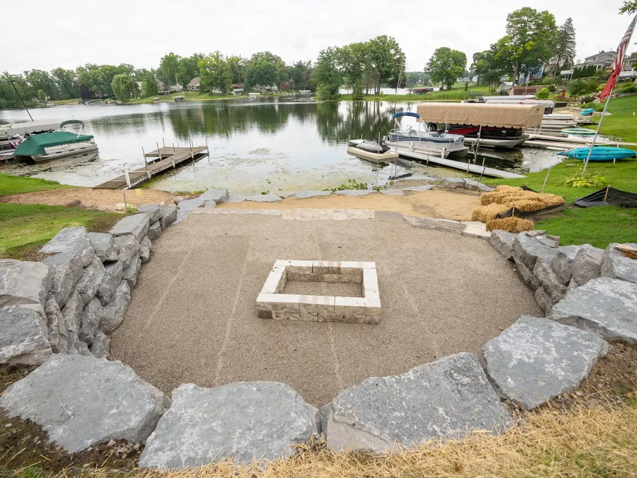 Custom-built fire pit on the beach front