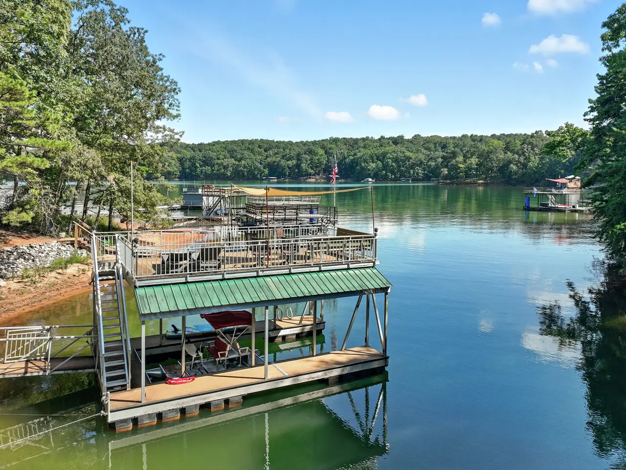 This rare Lake Lanier find offers 4 bedrooms, 4 full baths and 2 oversized bonus rooms making it the perfect retreat for entertaining, relaxing, and enjoying the lake lifestyle. To top it off, the owners are happy to include all the furnishings in the sale price! From the level driveway and inviting front porch, you'll step into a thoughtfully designed home with a graceful flow from the foyer and staircase into the family room, currently enjoyed as a recreation space, and then on to the great room with a cozy fireplace. A wall of windows frames sparkling lake views and draws you into the large, open kitchen with stainless steel appliances, granite countertops, and a bright breakfast area, while the separate dining room provides plenty of space for gathering with family and friends. The main level also includes a spacious suite with an oversized full, along with a convenient half bath and another full bath just off the kitchen for easy access after a day on the water. A large laundry room with sinks makes it simple to handle wet towels and lake gear. Upstairs, five generously sized bedrooms and a full bath provide comfortable accommodations for all your guests. The outdoor living is just as inviting, with an expansive screened-in porch overlooking the water, a side deck with connections for a hot tub in place and a separate grilling deck with ample space for outdoor seating. From there, it's just an easy walk to your private single slip dock with party deck and electricity, where you'll enjoy year-round deep water and wide, open views of the lake. Practical touches add even more appeal, including plenty parking space, two fenced-in yard areas, and a storage shed for all of your lake toys. Nestled on a quiet street, the property is just minutes from War Hill Park boat ramp, Athens Boat Club for gas and fireworks, quick access to Ga 400, Dawsonville shopping, restaurants, hiking, Dahlonega, and North Georgia's favorite wineries. With its blend of comfort, convenience, and its proven success as a short-term rental, this is a rare opportunity on Lake Lanier that you won't want to miss!