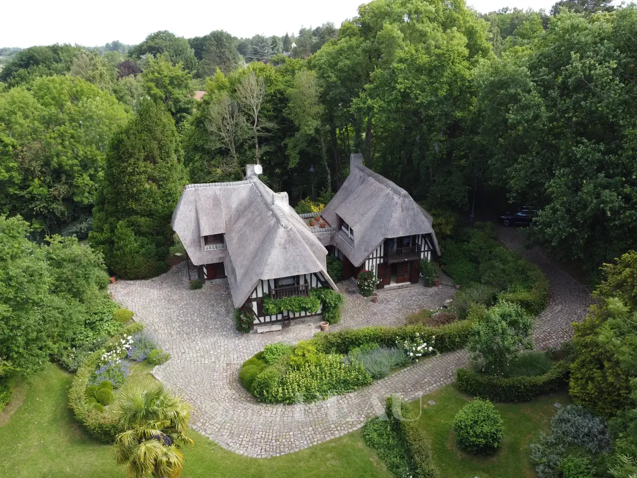 In one of the most beautiful private estates on the outskirts of Deauville, in the commune of Touques, Daniel Féau Deauville offers you a thatched cottage set in landscaped grounds of 2400 m². The house, which faces south-west, has a floor area of 327 m² (275m2 carrez) and a basement that could be converted. It comprises: an entrance hall with guest toilet and wash-hand basin, an impressive living room of more than 130 m2 comprising a fitted and equipped kitchen, a dining room with fireplace, a reading room, a double lounge also with a magnificent fireplace and a pantry. On the first floor, separated into two sections each served by its own staircase, there is a master suite with storage cupboards, bathroom and study, two bedrooms and a bathroom. On the other side are two bedrooms and a bathroom. All the bedrooms open onto a balcony, and some enjoy lovely sea views. In the basement, there is a bedroom with a water supply point, a boiler room and various rooms that could be converted with access to the outside. Lovely landscaped garden with sea views. The property benefits from an outdoor garage. Ideal family home on the doorstep of Deauville.