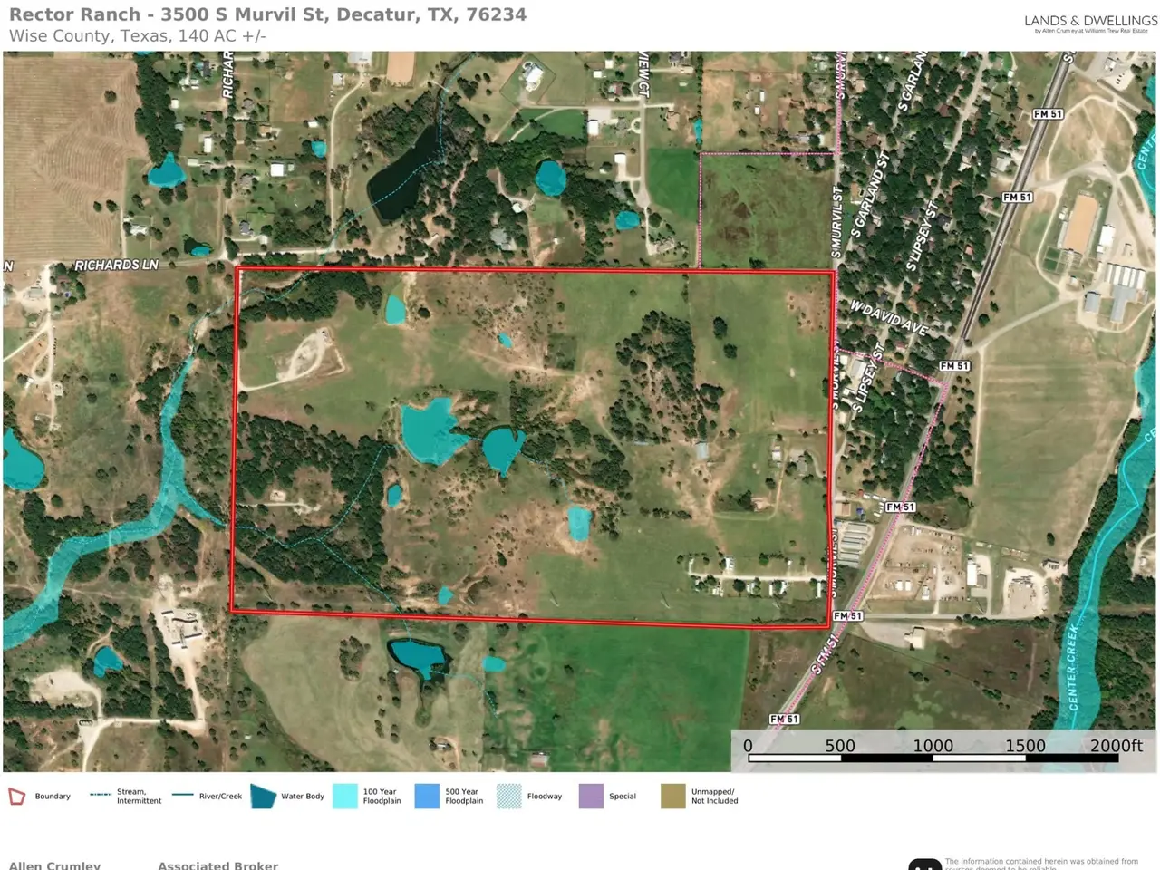 Take a look at this tremendous opportunity! 140 acres with an AG exemption just outside the city limits of Decatur. Tracts of this size, proximity, and makeup are very rare in this market area. The property has effortless access to FM 51 and over 1900' of road frontage on Murvil Street and no restrictions. There are several nice water features, the largest pond being 1.5 acres and no floodplain. Ground water is readily available in this area and water wells generally range from 200-400' deep. There is a well-maintained one-story 2,700 square foot residence and a small RV park in addition to a cattle operation. Buyer and buyer's agent to verify all information contained herein.