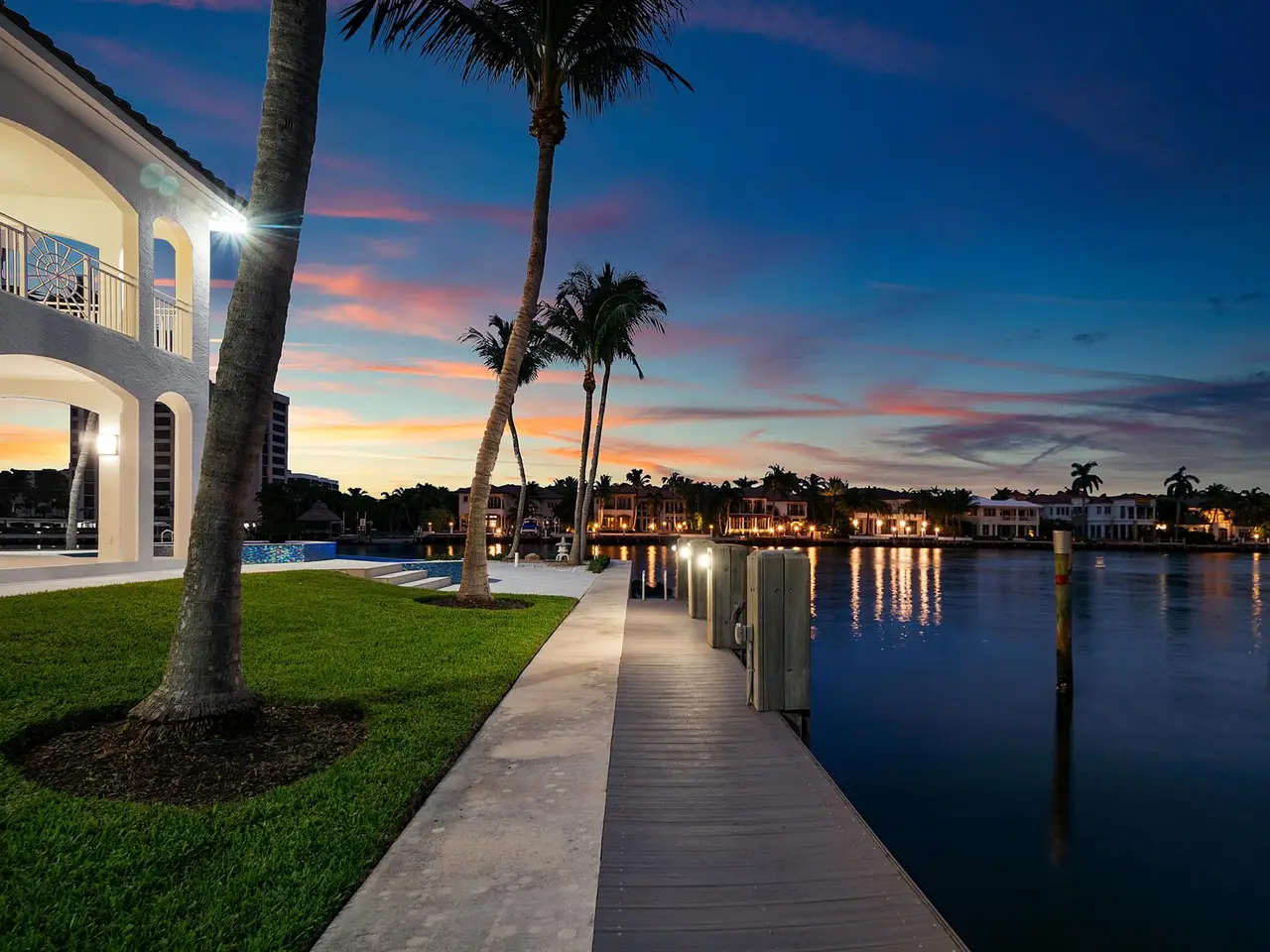 Exceptional Waterfront Estate | Intracoastal Point Lot. This extraordinary residence offers over 7,300 ft under air plus an additional 2,000 ft of covered outdoor living space and balconies, creating the perfect blend of indoor-outdoor living. Featuring 5 bedrooms and 9 baths, this estate is thoughtfully designed for both elegance and comfort, with two primary suites, one on each floor. Situated on a coveted point lot in Delray Beach Florida, the home enjoys 126 ft of direct Intracoastal frontage and 125 ft of canal frontage, with direct ocean access and no fixed bridges. A 50 ft dock with electric service and a 100 ft canal width allow for effortless yacht maneuvering and docking. From the moment you enter, you're captivated by panoramic water views from every room. The