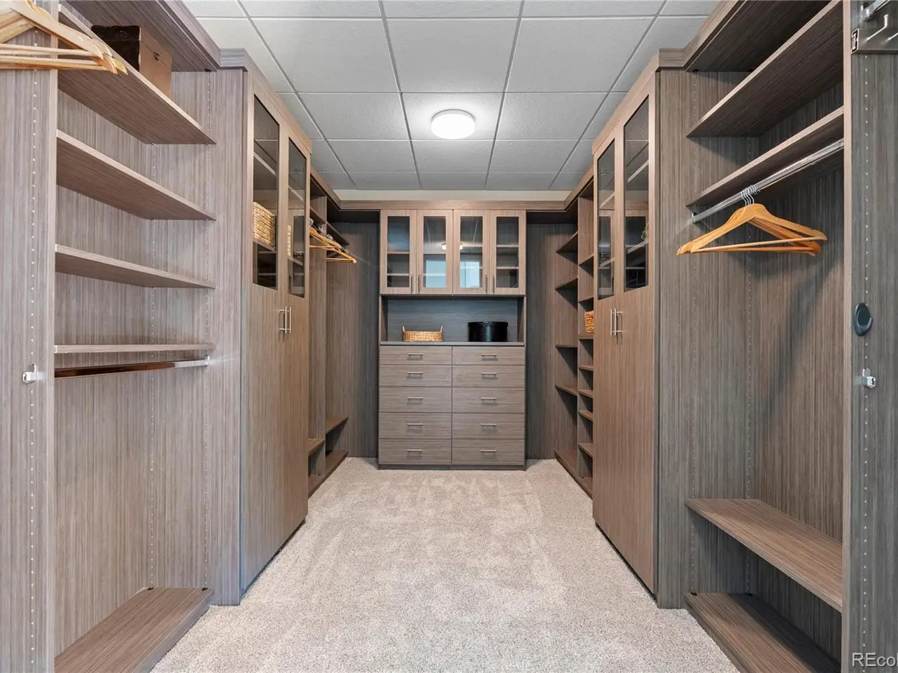 Large primary suite with custom walk-in closet