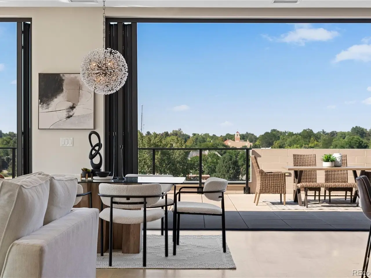 Expansive 1200 SF wraparound terrace with 180' views