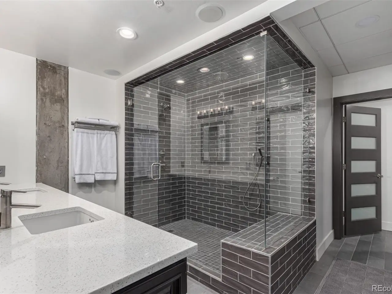 Emerge from the newly upgraded elevator into a private, light-filled entry with views of McGregor Square. This welcoming space includes custom cabinetry, a Murphy bed for guests, a large metal barn door for privacy, and chic dcor with designer lighting and furnishings. Just beyond, a stylish open office features a tufted chair, desk, and whimsical stool under a custom chandelier, with a nearby guest bath showcasing designer tile, wood and stone vanity, and Delta fixtures. The chefs kitchen impresses with a 7' x 7' butcher block island, aged black cabinetry, Sharp drawer microwave, two beverage fridges, and premium Thermador appliances. Burnt red subway tile, Tan Brown granite counters, glass display cabinets, and elegant lighting create a warm, functional space. Four hammered iron bar stools complete the look. Enjoy three balconies with stunning views. The 210 sq ft covered southeast balcony features a gas firepit, water spigot, and Restoration Hardware furniture. The northeast balcony is perfect for morning coffee or fireworks over Coors Field, while the northwest balcony, private to the primary suite, offers sunset and mountain glimpses. The dining area includes a charcoal wood table for eight, three custom chandeliers, and a full-height curio. The spacious living room offers a large L-shaped sofa, leather chairs, smart TV, and crystal chandelier. The guest bedroom features blackout drapes, king bed, smart TV, and adjacent steam bath. The primary suite includes a canopy bed, sitting area, walk-in closet, blackout shades, private balcony, and spa-like bath with Euro shower, double vanity, and in-suite laundry. Includes 2 tandem garage spaces, oversized storage, all in the heart of LoDonext to Coors Field, across from McGregor Square, and just 2 blocks to Union Station and all restaurants, culture and sporting venues that Downtown has to offer. AVAILABLE FURNISHED - MOVE RIGHT IN!