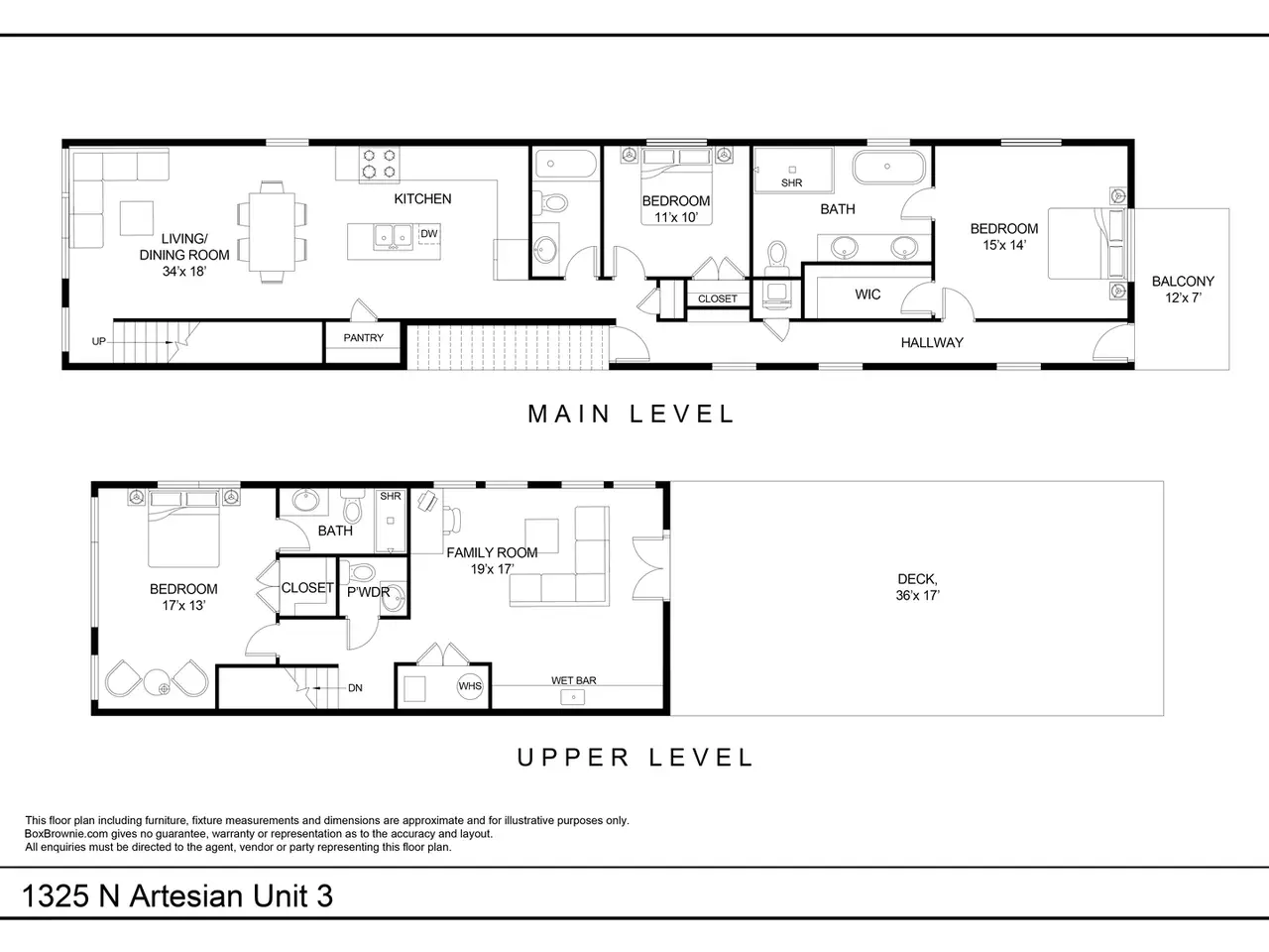 Welcome to move-in ready 1325 N Artesian, West Town's premier ground up new construction development. This penthouse duplex is a can't miss with luxury upgrades at every turn (2,400 sq ft + 600+ sq ft private roof deck). Walk into the entertainer's kitchen - a paneled ready Thermador appliance package, custom European cabinetry, waterfall granite countertops, counter depth refrigerator, undermount lighting, microwave drawer, pendant lighting, soaring ceilings, and a large island. Show-stopping floor-to-ceiling windows shine light throughout the open-concept family/kitchen space. Luxury feature list includes a built-in custom cubby/mudroom nook, top floor family room with wet bar w/custom-built ins/floating shelves. Primary suite #1 extra-large WIC, W/D, spa soaking tub, and private balcony with a view. Primary Suite #2 features floor to ceiling windows, 2 WIC's, and custom quartz bath finishes. An expansive private roof deck provides green space, entertaining space, happiness and more. Top notch capex includes tankless water heater, high efficiency mechanicals & humidifier. Two private outdoor spaces, carport garage space with EV charger, one year builder's warranty, ready to close now. Enjoy all that West Town and Wicker Park has to offer from a quiet, tree-lined block. Run, don't walk.