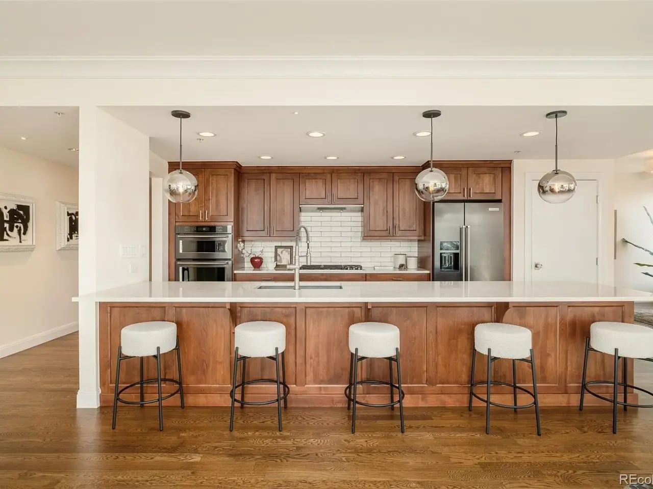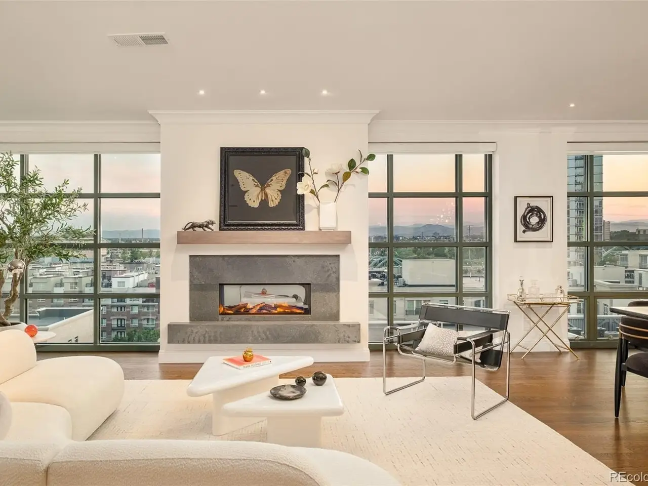 Discover the defining factors of Luxury within this stunning remodeled 8th floor corner 2 bed 3 bath condominium at Riverfront Tower. This modern architectural gem provides a balance of urban city life, a central point for cultural experiences such as sole stirring symphonies, major league sporting events, Michelin starred restaurants and world class retail shops, with the tranquility of nearby green spaces and majestical City and Mountain views from its floor to ceiling windows integrating the exterior within the interior and enjoy a spacious balcony with a built-in gas line and water tap. Adjacent to Commons Park and the North Platte River with 28 miles of trails. Marvel at the expansive great room showcasing a sleek electric Evonik fireplace encased in stone abreast of dining, and the gourmet kitchen having high end appliances of Bosch, KitchenAid and Wolfe to enjoy your creations while entertaining from the expansive center island capped in Caesar stone with a central sink. Relax in the flex space “snug” and enjoy a game or use this as an office. The deliberate design of this floor plan is wonderful for entertaining. Retire to the primary suite, greeted by an antechamber and expansive walk-in closet with a stunning newly remodeled spa-inspired 5-piece bathroom featuring a freestanding soaking tub and an oversized glass shower. This incredible condominium continues to be complimented having Second bedroom with custom built-in drawers, a separate closet with a beautifully remodeled ensuite and positioned down the hall for perfect privacy this residence includes a third bath for visiting guests. A one-of-a-kind residence that has been elegantly remodeled from door handles to directional button spotlights having nothing unturned blending luxurious finishes with timeless comfort. Secure your favorite autos in the two deeded tandem parking spots with an ample storage unit. Moments from Union Station across the Millennial bridge under the clock-tower you'd be home!