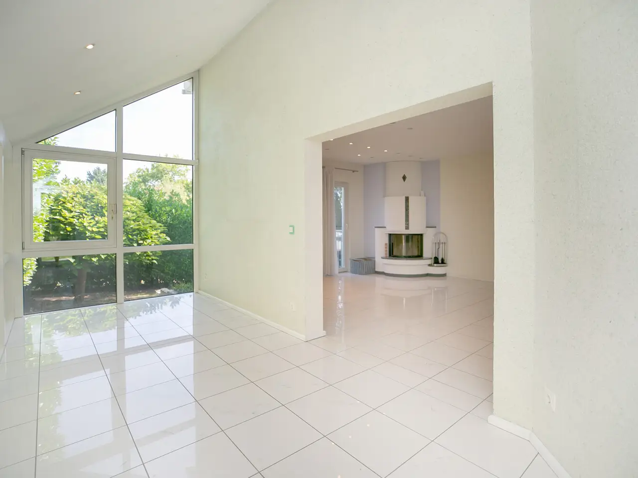 Welcome to a property that meets a wide range of requirements: This well-kept detached house is located in a quiet residential area and is characterized by a generously usable living space of approx. 185 m². With a total of five rooms, including two bedrooms (a third can easily be separated), it offers enough space for families, couples or people with increased space requirements. The house is in excellent condition, so you can move straight in without having to carry out extensive renovation work. The well thought-out room layout ensures a pleasant living atmosphere and flexible usage options. On the first floor with underfloor heating, you first enter the spacious hallway, which provides access to the open-plan living and dining area and the heated conservatory. Large windows let in plenty of natural light and create a friendly atmosphere. In the cold winter months, a wood-burning stove provides cozy warmth. The living area is designed in such a way that different living concepts can be easily realized. Adjacent is the kitchen, which has plenty of work space. A practical and space-saving sliding door leads to the living/dining area. Another room on the first floor is ideal as a study or guest room. A guest WC is also available. A terrace with access to the garden extends the living space outside in summer and invites you to linger as a retreat. The secluded garden is easy to maintain and has an irrigation system and a garden shed with plenty of storage space. The upper floor currently houses two spacious bedrooms, of which the bedroom with access to the balcony can easily be divided into two bedrooms. The spacious master bedroom has a walk-in closet. The daylight bathroom is equipped with a bathtub, separate shower, double washbasin and WC. The rooms on the upper floor have radio-controlled radiators with the exception of the bathroom, which is heated by underfloor heating and an additional towel radiator. In the basement, with a ceiling height of approx. 2.51 m and underfloor heating, you will find a room of approx. 35 sqm with full-height daylight windows, which can be used as a home office, sports/yoga or hobby room. Two further cellar rooms and a utility/heating room offer plenty of additional storage space. Cotton plaster on the interior walls ensures a pleasant indoor climate and additional heat and sound insulation. The property is also equipped with a high-quality BUS system from GIRA. Each light source, each socket and all shutters can be controlled individually. Complete external insulation, internally insulated, burglar-resistant roller shutters and high-quality insulating glass ensure the excellent energy value of the house. An oversized and high garage is available for vehicles, which is also suitable for a small motorhome or large SUV. There are also two additional parking spaces. The surrounding area offers an excellent infrastructure: shopping facilities, doctors, kindergartens, schools and the S-Bahn to Frankfurt are just a few minutes' walk away. Thanks to the convenient location, you can quickly reach the surrounding districts or the city center. At the same time, you benefit from a quiet residential area away from the hustle and bustle. You are welcome to arrange a viewing appointment to see the qualities of this property for yourself. We look forward to your inquiry.